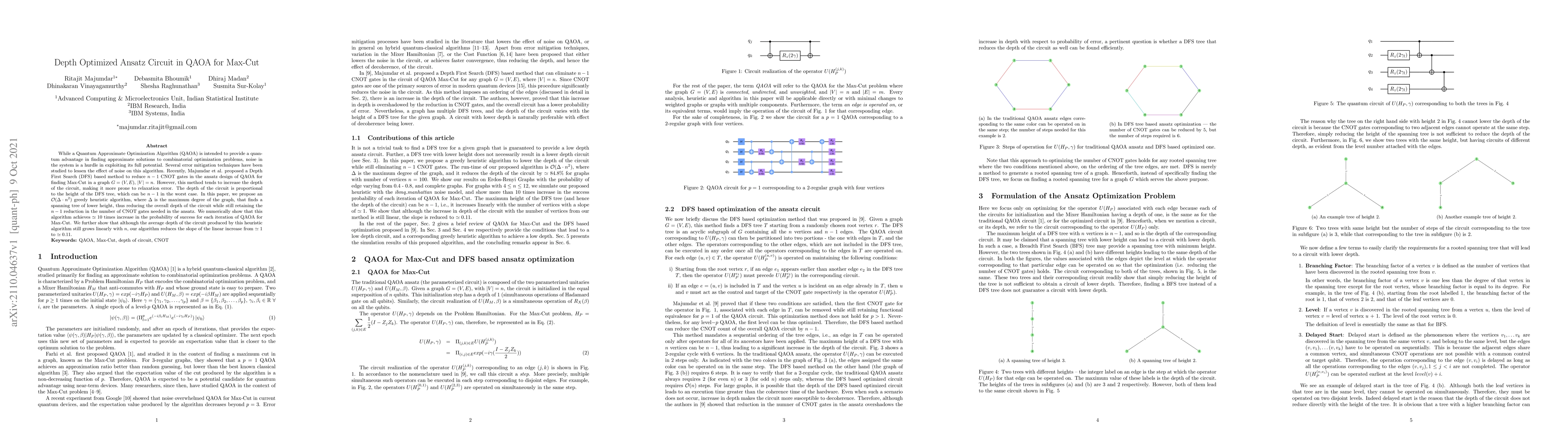 This paper proposes a heuristic algorithm to optimize the depth of the ansatz circuit in QAOA for Max-Cut, reducing the number of CNOT gates while minimizing circuit depth. The new approach achieves nearly a 10-fold increase in success probability and reduces the linear growth rate of circuit depth, mitigating relaxation errors.