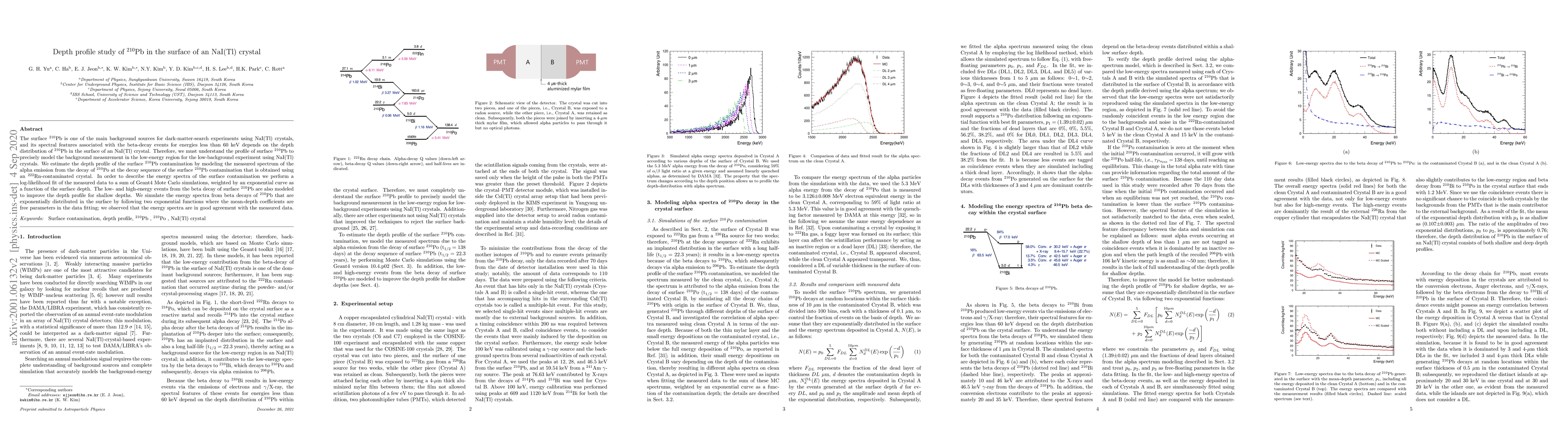 This study investigates the depth profile of surface $^{210}$Pb contamination in NaI(Tl) crystals, a significant background source for dark-matter searches. By modeling alpha emission from $^{210}$Po decay and fitting measured spectra to Geant4 simulations, the researchers determine the exponential distribution of $^{210}$Pb, improving background modeling for low-energy events.