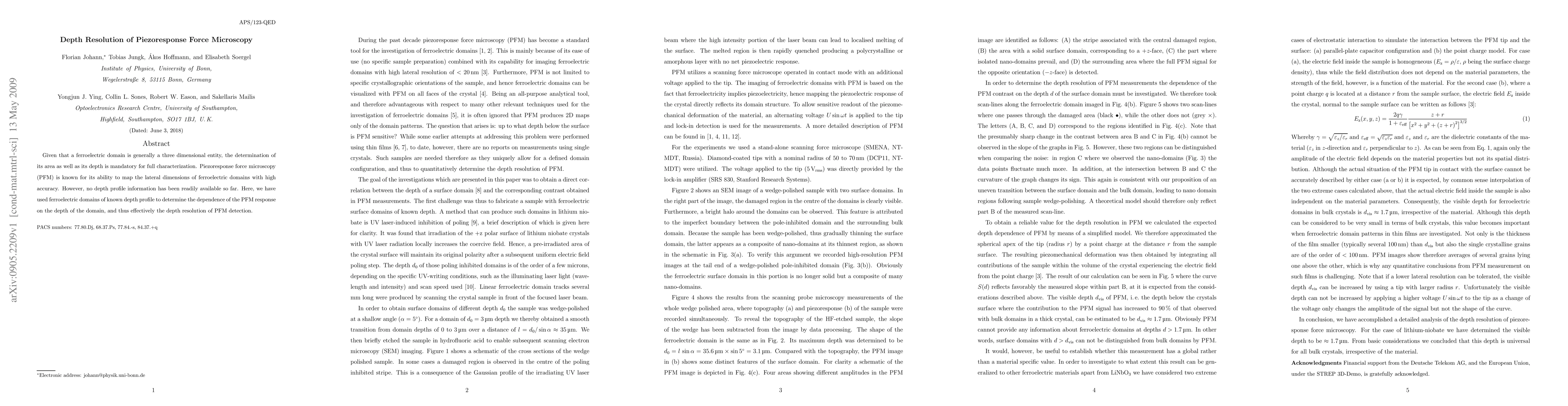 This study investigates the depth resolution capabilities of piezoresponse force microscopy (PFM) by determining the PFM response dependence on the depth of ferroelectric domains, aiming to provide depth profile information for full characterization of these three-dimensional entities.