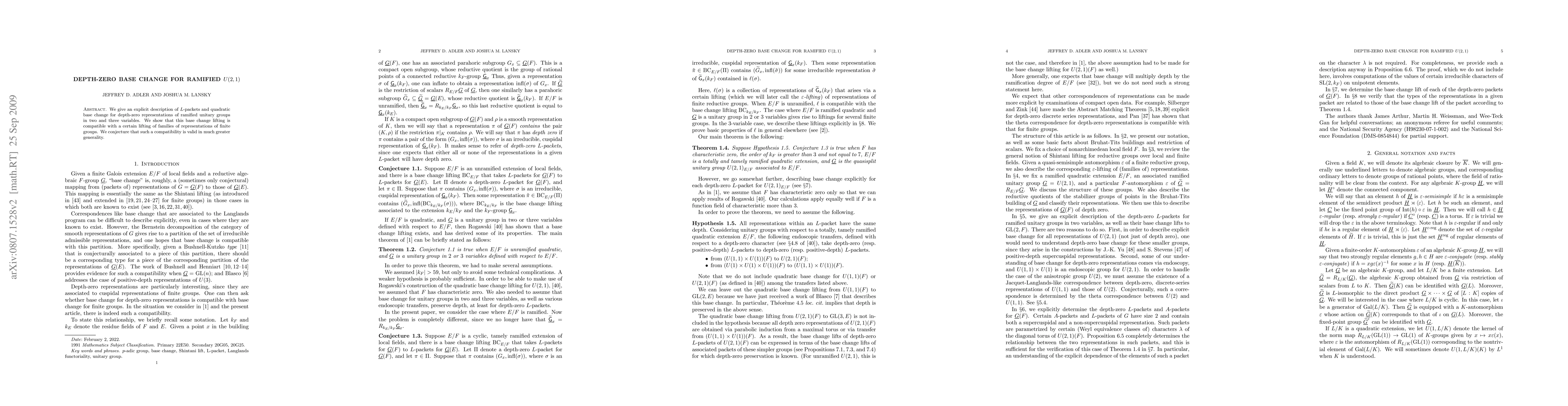 This paper provides an explicit description of L-packets and quadratic base change for depth-zero representations of ramified unitary groups in two and three variables. It also demonstrates compatibility with a lifting of families of representations of finite groups, with a conjecture extending this compatibility to broader contexts.