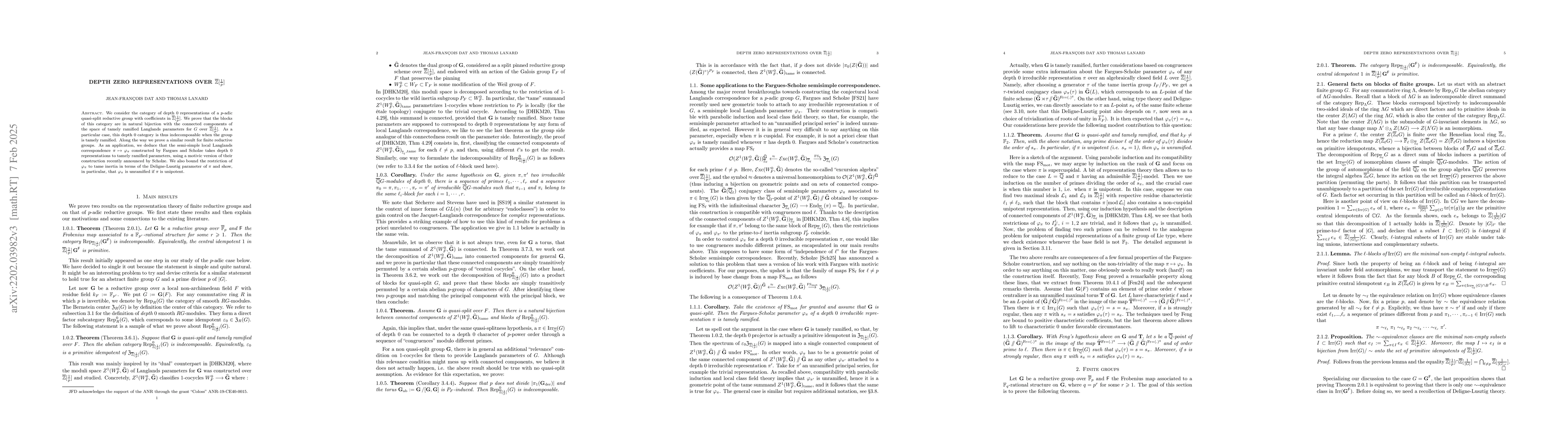 We consider the category of depth $0$ representations of a $p$-adic quasi-split reductive group with coefficients in $\overline{\mathbb{Z}}[\frac{1}{p}]$. We prove that the blocks of this category are in natural bijection with the connected components of the space of tamely ramified Langlands parameters for $G$ over $\overline{\mathbb{Z}}[\frac{1}{p}]$. As a particular case, this depth $0$ category is thus indecomposable when the group is tamely ramified. Along the way we prove a similar result for finite reductive groups. As an application, we deduce that the semi-simple local Langlands correspondence $\pi\mapsto \varphi_{\pi}$ constructed by Fargues and Scholze takes depth $0$ representations to tamely ramified parameters, using a motivic version of their construction recently announced by Scholze. We also bound the restriction of $\varphi_{\pi}$ to tame inertia in terms of the Deligne-Lusztig parameter of $\pi$ and show, in particular, that $\varphi_{\pi}$ is unramified if $\pi$ is unipotent.