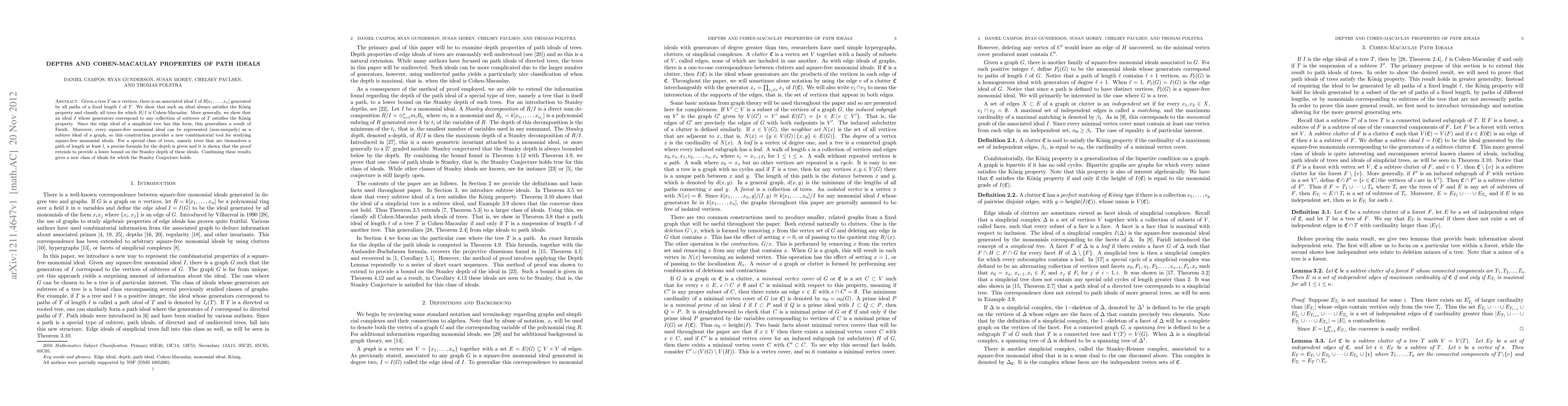 Given a tree T on n vertices, there is an associated ideal I of a polynomial ring in n variables over a field, generated by all paths of a fixed length of T. We show that such an ideal always satisfies the Konig property and classify all trees for which R/I is Cohen-Macaulay. More generally, we show that an ideal I whose generators correspond to any collection of subtrees of T satisfies the Konig property. Since the edge ideal of a simplicial tree has this form, this generalizes a result of Faridi. Moreover, every square-free monomial ideal can be represented (non-uniquely) as a subtree ideal of a graph, so this construction provides a new combinatorial tool for studying square-free monomial ideals. For a special class of trees, namely trees that are themselves a path, a precise formula for the depth is given and it is shown that the proof extends to provide a lower bound on the Stanley depth of these ideals. Combining these results gives a new class of ideals for which the Stanley Conjecture holds.