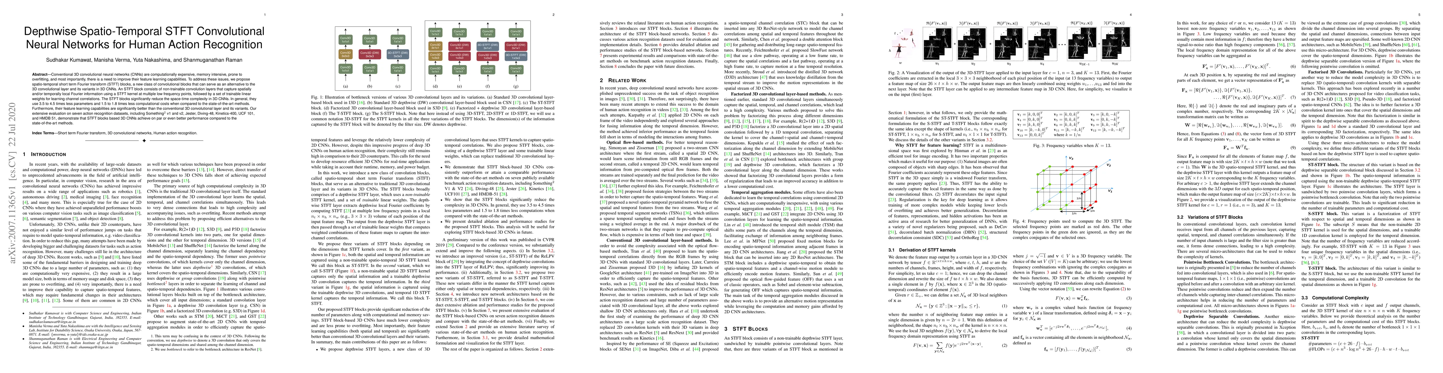 This paper proposes spatio-temporal short term Fourier transform (STFT) convolutional blocks as an alternative to 3D CNNs for human action recognition, significantly reducing computational costs and improving feature learning. Evaluations on seven datasets show competitive performance compared to state-of-the-art methods.