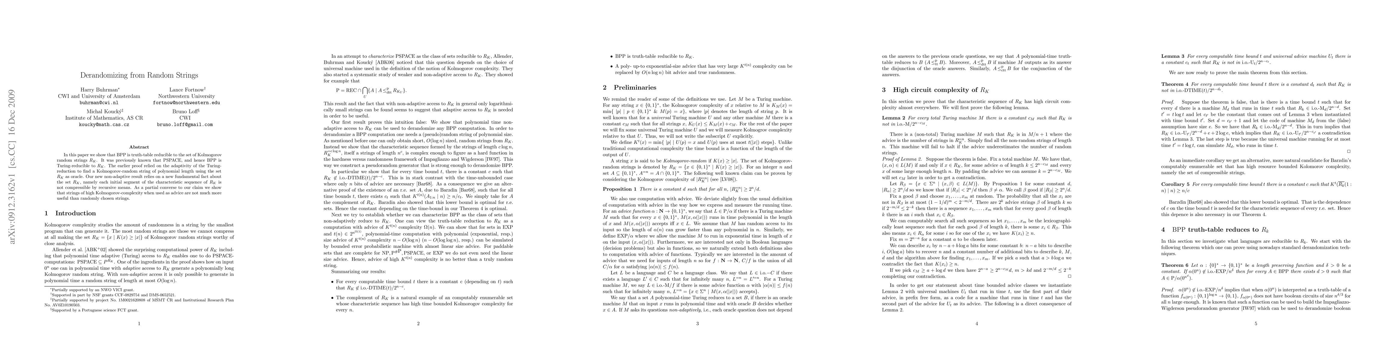 In this paper we show that BPP is truth-table reducible to the set of Kolmogorov random strings R_K. It was previously known that PSPACE, and hence BPP is Turing-reducible to R_K. The earlier proof relied on the adaptivity of the Turing-reduction to find a Kolmogorov-random string of polynomial length using the set R_K as oracle. Our new non-adaptive result relies on a new fundamental fact about the set R_K, namely each initial segment of the characteristic sequence of R_K is not compressible by recursive means. As a partial converse to our claim we show that strings of high Kolmogorov-complexity when used as advice are not much more useful than randomly chosen strings.
