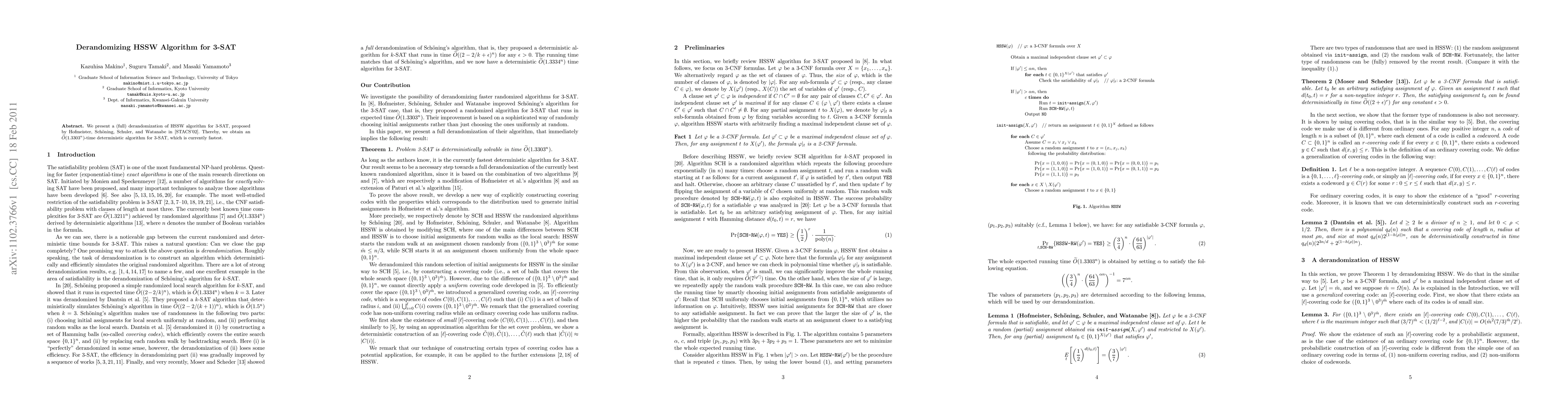 This paper fully derandomizes the HSSW algorithm for 3-SAT, resulting in a deterministic algorithm with a runtime of O(1.3303^n), making it the fastest known method for solving 3-SAT problems.