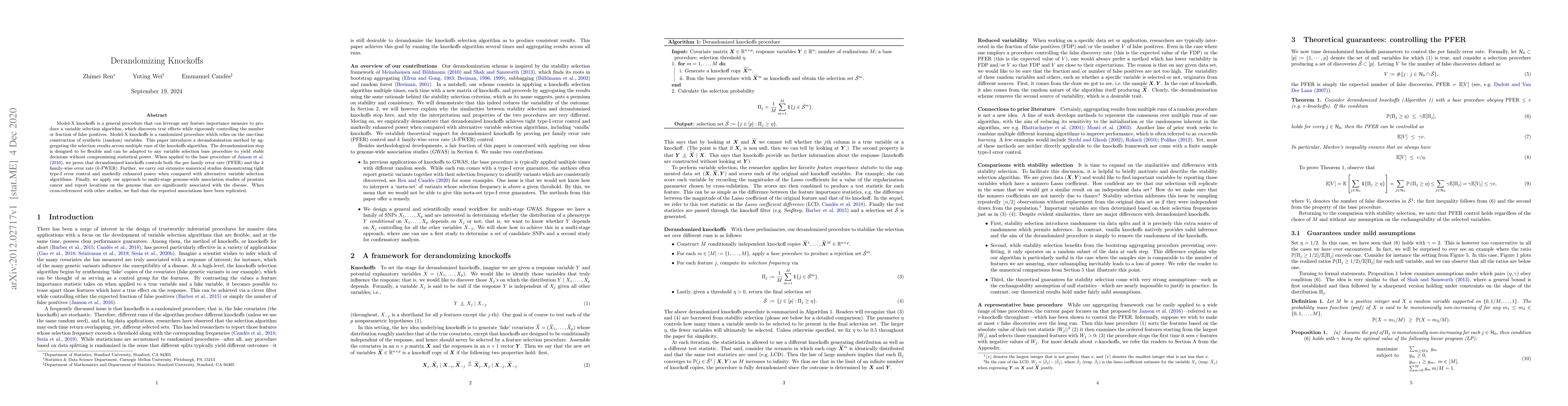 Researchers introduced a derandomization method for Model-X knockoffs, which controls error rates and enhances power in variable selection algorithms, leading to reliable results in genome-wide association studies.