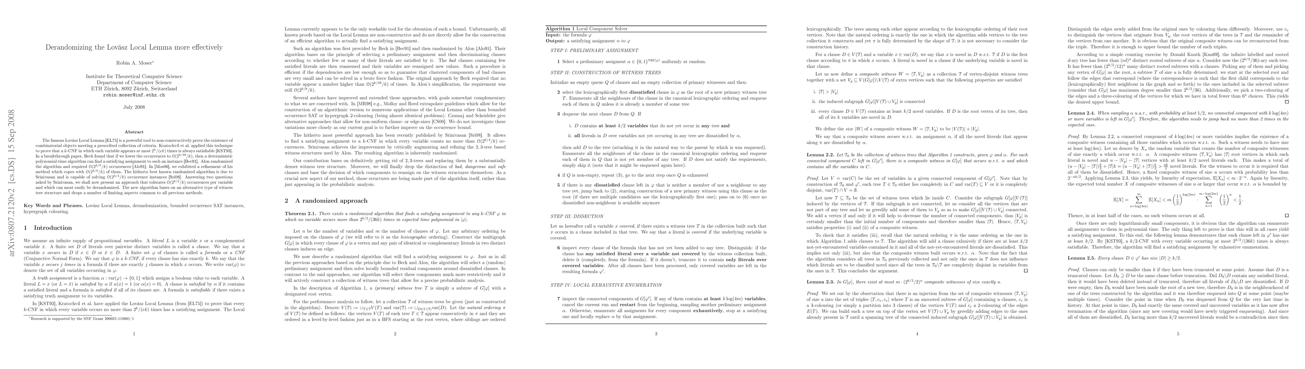 The famous Lovasz Local Lemma [EL75] is a powerful tool to non-constructively prove the existence of combinatorial objects meeting a prescribed collection of criteria. Kratochvil et al. applied this technique to prove that a k-CNF in which each variable appears at most 2^k/(ek) times is always satisfiable [KST93]. In a breakthrough paper, Beck found that if we lower the occurrences to O(2^(k/48)/k), then a deterministic polynomial-time algorithm can find a satisfying assignment to such an instance [Bec91]. Alon randomized the algorithm and required O(2^(k/8)/k) occurrences [Alo91]. In [Mos06], we exhibited a refinement of his method which copes with O(2^(k/6)/k) of them. The hitherto best known randomized algorithm is due to Srinivasan and is capable of solving O(2^(k/4)/k) occurrence instances [Sri08]. Answering two questions asked by Srinivasan, we shall now present an approach that tolerates O(2^(k/2)/k) occurrences per variable and which can most easily be derandomized. The new algorithm bases on an alternative type of witness tree structure and drops a number of limiting aspects common to all previous methods.