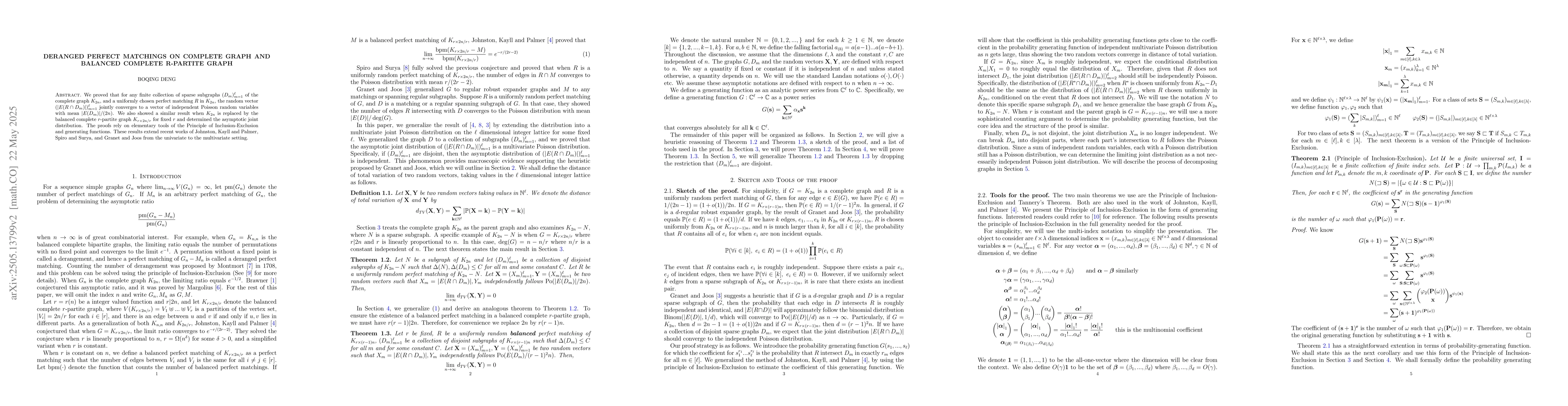 This work extends prior univariate results to a multivariate setting, providing a more comprehensive analysis of deranged perfect matchings in complete and balanced complete r-partite graphs.