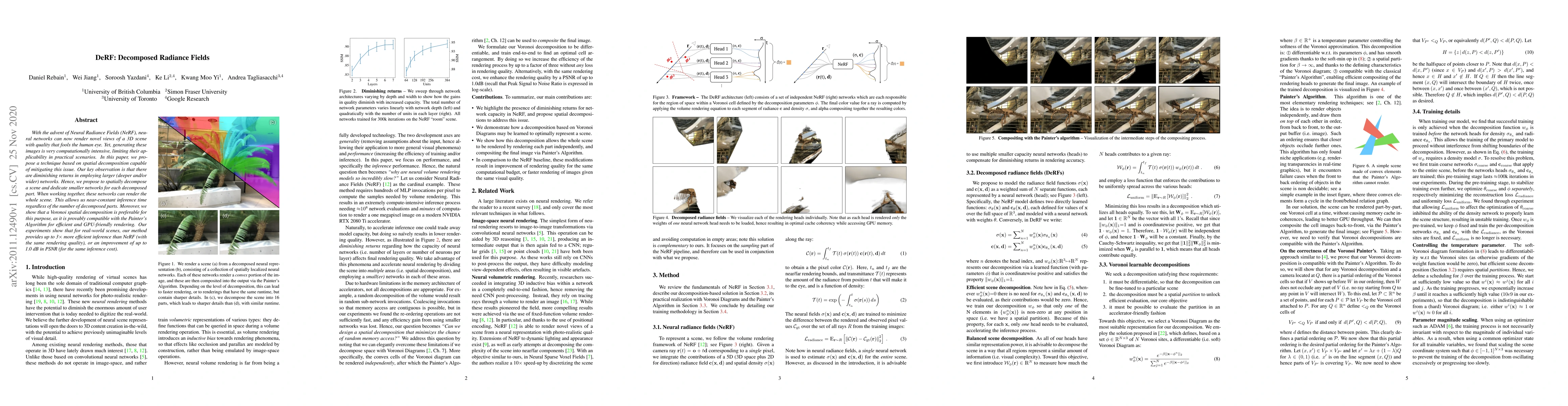 With the advent of Neural Radiance Fields (NeRF), neural networks can now render novel views of a 3D scene with quality that fools the human eye. Yet, generating these images is very computationally intensive, limiting their applicability in practical scenarios. In this paper, we propose a technique based on spatial decomposition capable of mitigating this issue. Our key observation is that there are diminishing returns in employing larger (deeper and/or wider) networks. Hence, we propose to spatially decompose a scene and dedicate smaller networks for each decomposed part. When working together, these networks can render the whole scene. This allows us near-constant inference time regardless of the number of decomposed parts. Moreover, we show that a Voronoi spatial decomposition is preferable for this purpose, as it is provably compatible with the Painter's Algorithm for efficient and GPU-friendly rendering. Our experiments show that for real-world scenes, our method provides up to 3x more efficient inference than NeRF (with the same rendering quality), or an improvement of up to 1.0~dB in PSNR (for the same inference cost).