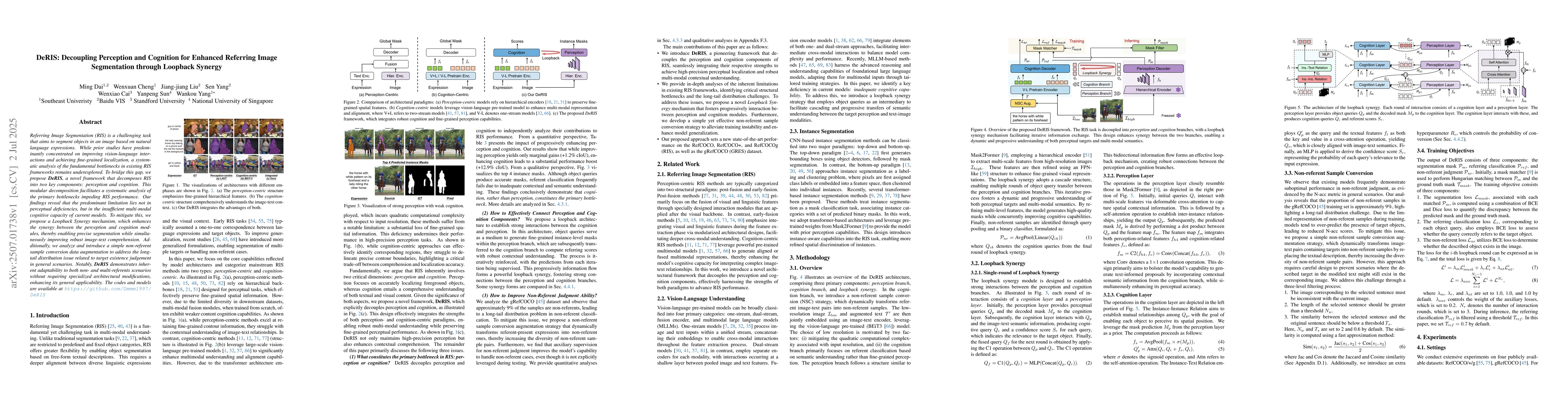 Referring Image Segmentation (RIS) is a challenging task that aims to segment objects in an image based on natural language expressions. While prior studies have predominantly concentrated on improving vision-language interactions and achieving fine-grained localization, a systematic analysis of the fundamental bottlenecks in existing RIS frameworks remains underexplored. To bridge this gap, we propose DeRIS, a novel framework that decomposes RIS into two key components: perception and cognition. This modular decomposition facilitates a systematic analysis of the primary bottlenecks impeding RIS performance. Our findings reveal that the predominant limitation lies not in perceptual deficiencies, but in the insufficient multi-modal cognitive capacity of current models. To mitigate this, we propose a Loopback Synergy mechanism, which enhances the synergy between the perception and cognition modules, thereby enabling precise segmentation while simultaneously improving robust image-text comprehension. Additionally, we analyze and introduce a simple non-referent sample conversion data augmentation to address the long-tail distribution issue related to target existence judgement in general scenarios. Notably, DeRIS demonstrates inherent adaptability to both non- and multi-referents scenarios without requiring specialized architectural modifications, enhancing its general applicability. The codes and models are available at https://github.com/Dmmm1997/DeRIS.