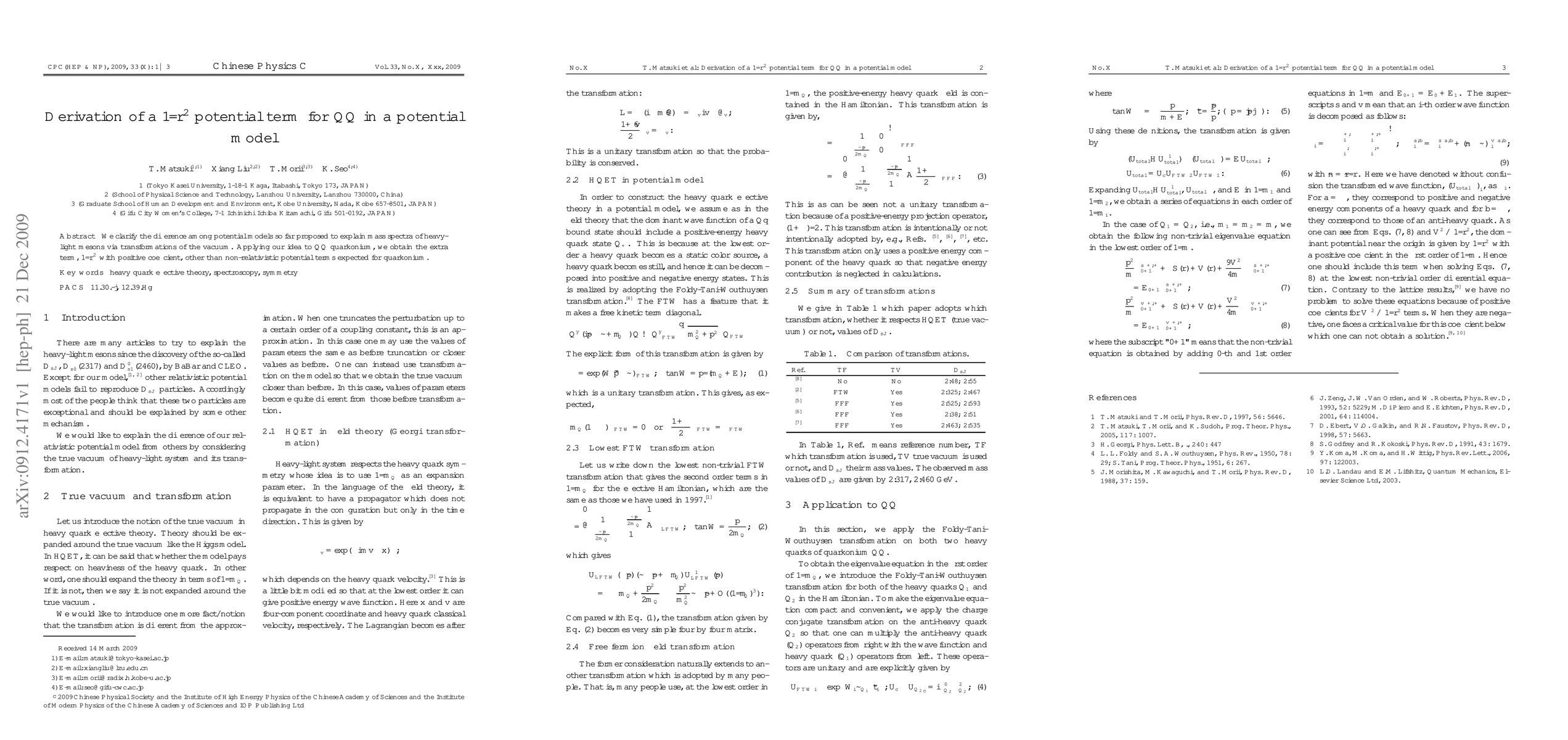 We clarify the difference among potential models so far proposed to explain mass spectra of heavy-light mesons via transformations of the vacuum. Applying our idea to QQ-bar quarkonium, we obtain the extra term, 1/r^2 with positive coefficient, other than non-relativistic potential terms expected for quarkonium.