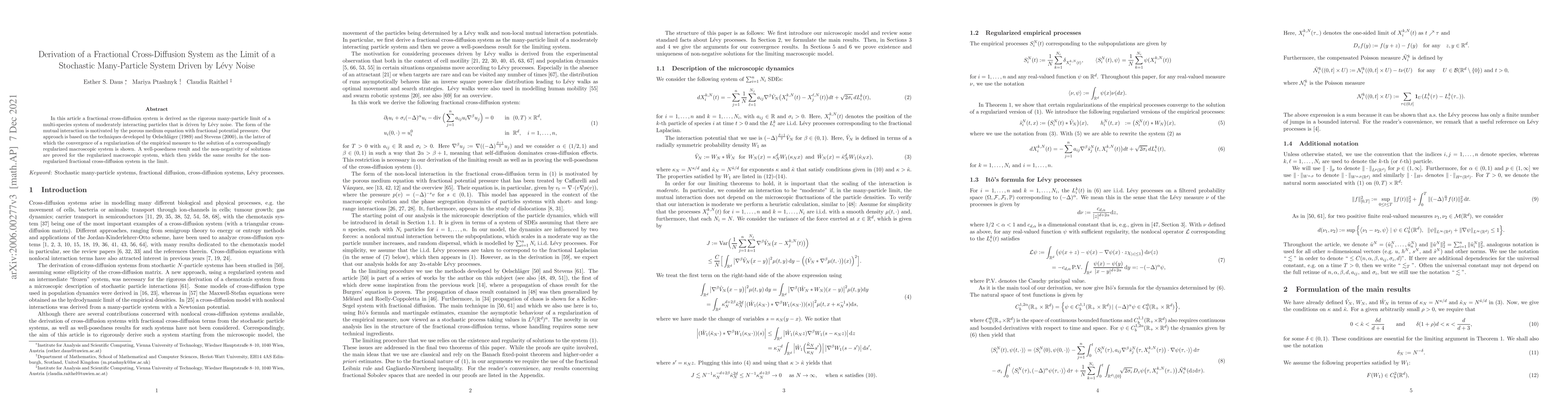 This paper derives a fractional cross-diffusion system from the many-particle limit of a multi-species system driven by Lévy noise, motivated by the porous medium equation with fractional potential pressure. The rigorous derivation employs techniques from Oelschläger and Stevens to establish well-posedness and non-negativity for the resulting system.