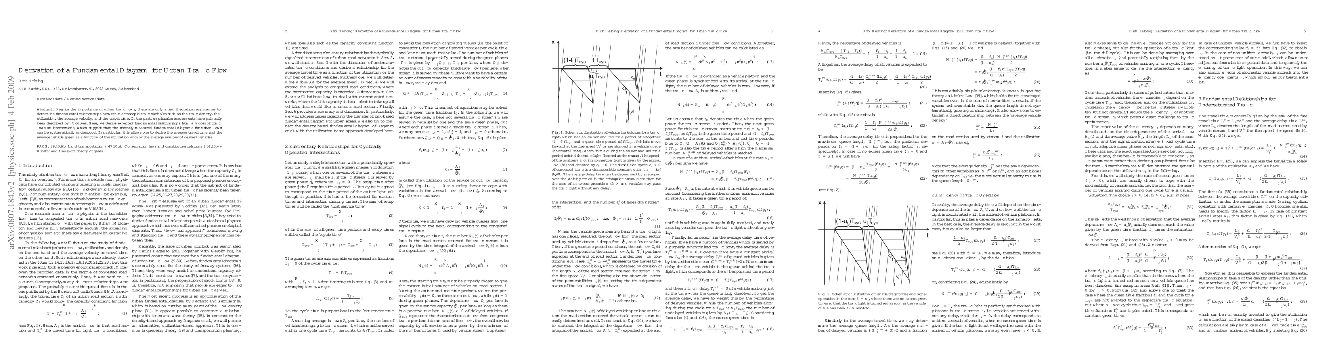 This paper derives fundamental relationships between macroscopic traffic variables like density, utilization, velocity, and travel time from a theoretical model of urban traffic flows at intersections, providing a systematic understanding of empirical measurements and the dependence of travel time and speed on utilization and vehicle delays.