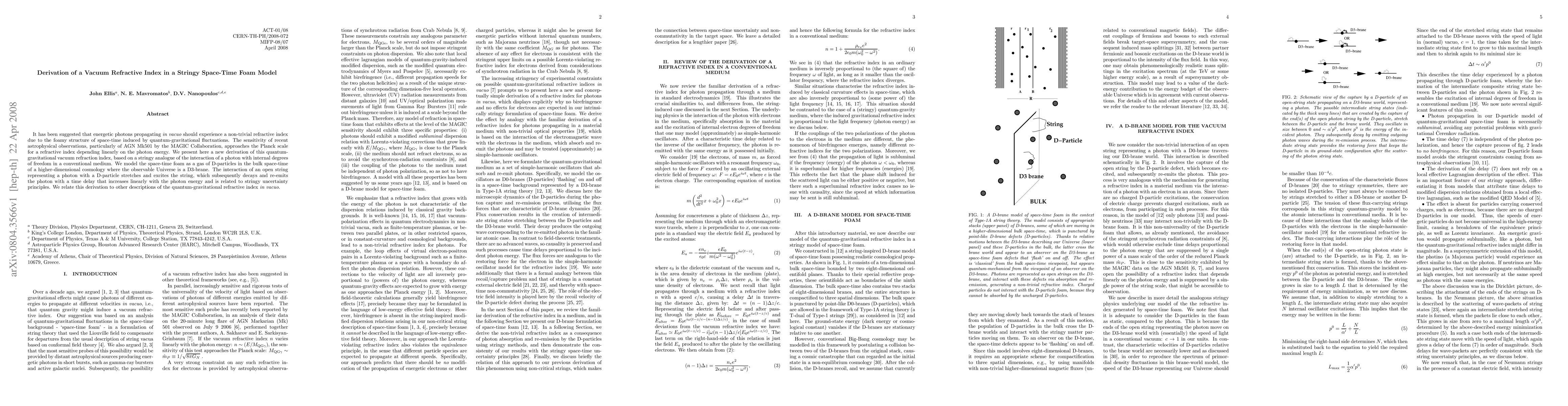 This paper derives a vacuum refractive index for energetic photons due to quantum-gravitational fluctuations in a stringy space-time foam model, where the interaction of photons with D-particles causes a time delay proportional to photon energy. The findings are relevant to recent astrophysical observations, particularly those of AGN Mk501.