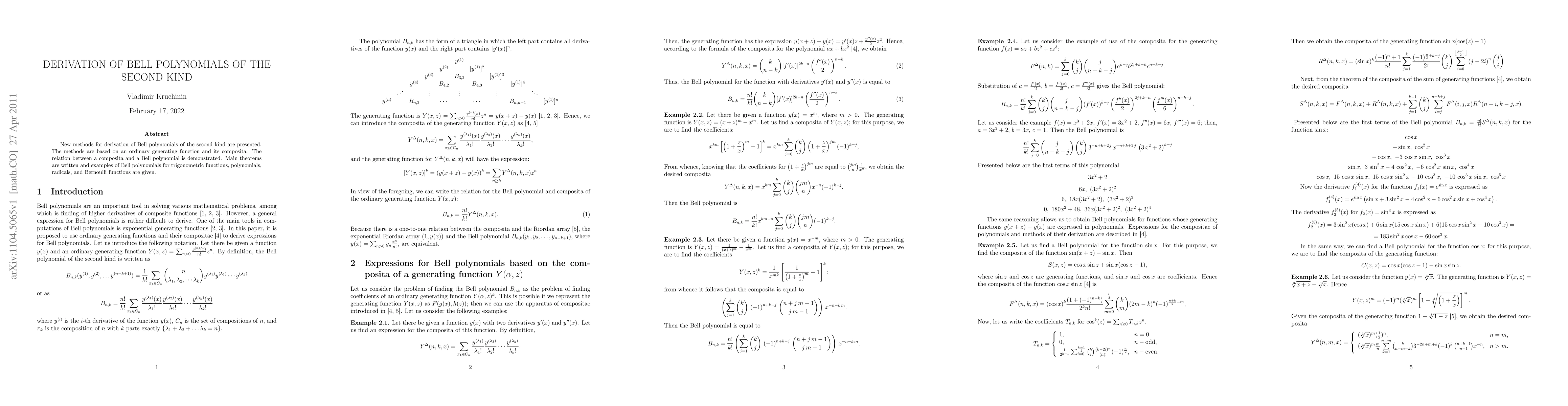 New methods for deriving Bell polynomials of the second kind based on generating functions and their compositas have been presented, with examples for various mathematical functions.