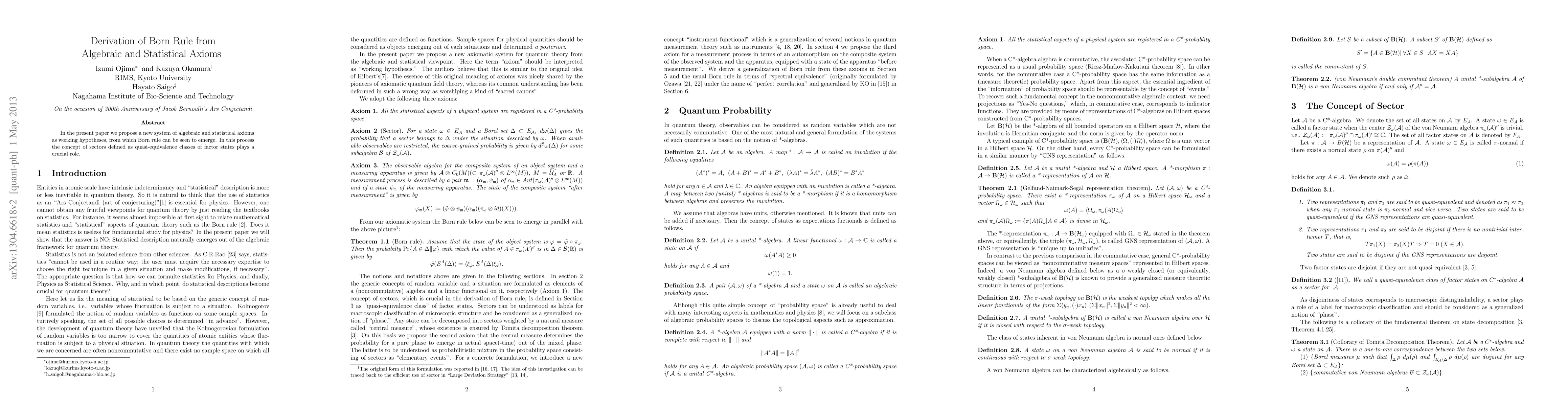 In the present paper we propose a new axiomatic system of algebraic and statistical axioms as working hypotheses, from which Born rule can be seen to emerge. In this process the concept of sectors defined as quasi-equivalence classes of factor states plays a crucial role.