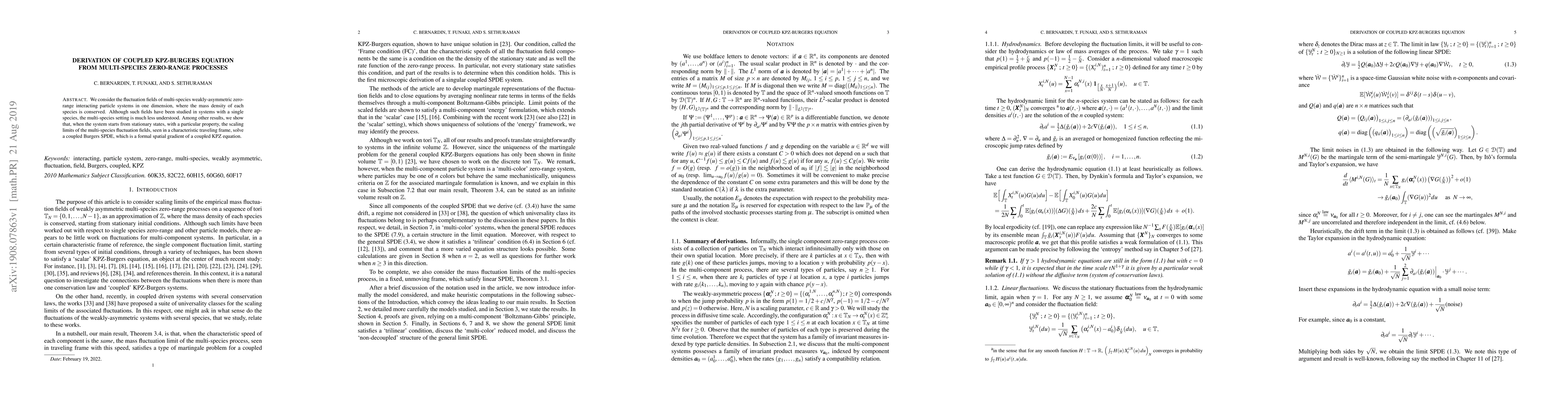 We consider the fluctuation fields of multi-species weakly-asymmetric zero-range interacting particle systems in one dimension, where the mass density of each species is conserved. Although such fields have been studied in systems with a single species, the multi-species setting is much less understood. Among other results, we show that, when the system starts from stationary states, with a particular property, the scaling limits of the multi-species fluctuation fields, seen in a characteristic traveling frame, solve a coupled Burgers SPDE, which is a formal spatial gradient of a coupled KPZ equation.