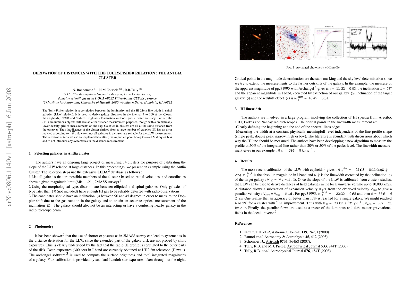 This paper derives distances using the Tully-Fisher relation for galaxies in the Antlia Cluster, emphasizing selection criteria to avoid biases and systematic errors. The method leverages the correlation between galaxy luminosity and HI line width to measure distances, with a focus on minimizing errors through the use of a large galaxy sample.