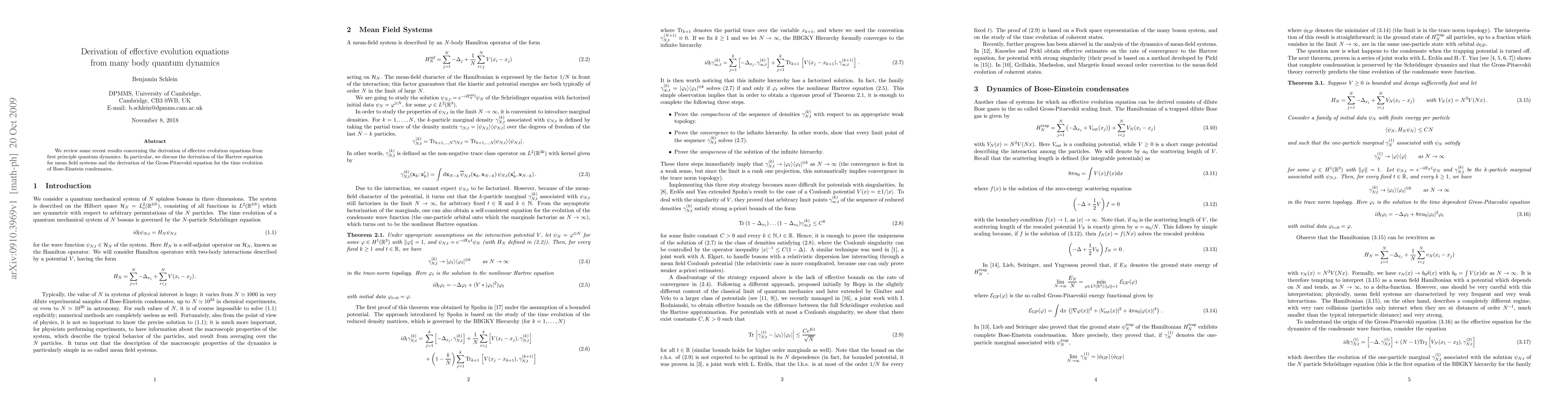 Summary: This paper reviews the derivation of effective evolution equations, such as the Hartree equation for mean field systems and the Gross-Pitaevskii equation for Bose-Einstein condensates, from fundamental quantum dynamics principles.