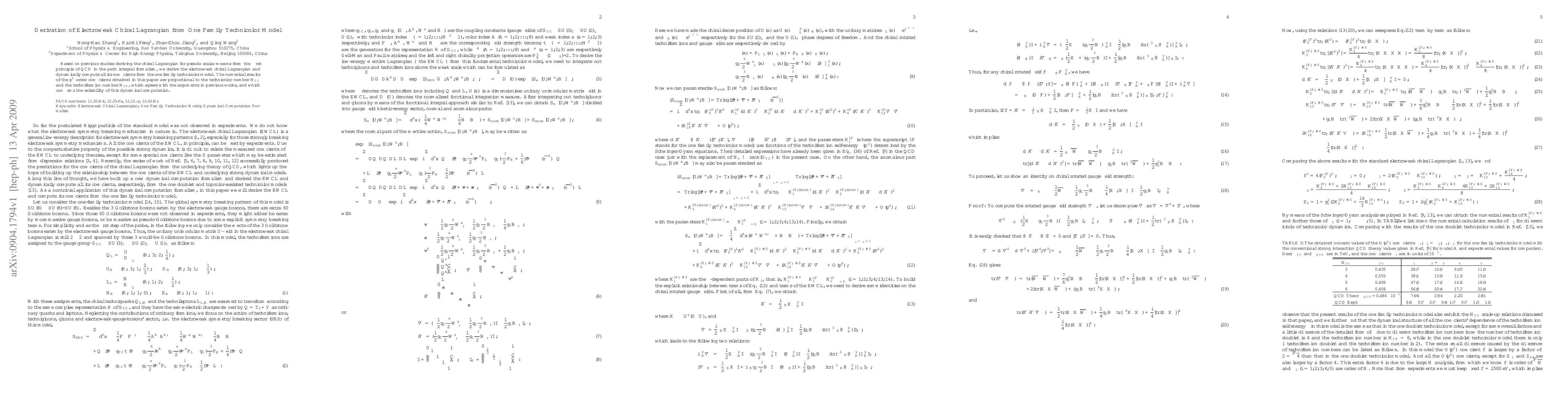This paper derives the electroweak chiral Lagrangian from a one family technicolor model, dynamically computing its coefficients. The results show that the coefficients are proportional to the technicolor and technifermion numbers, confirming the method's reliability.
