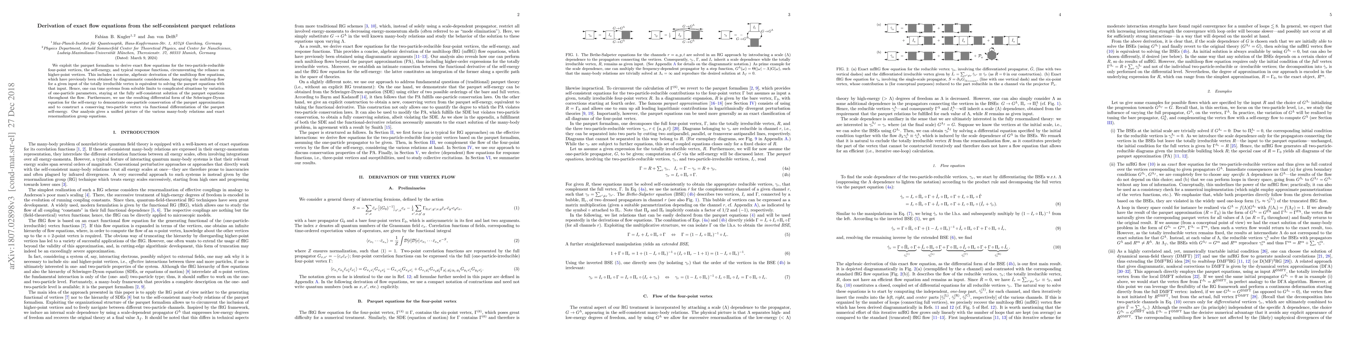 This paper derives exact flow equations from the self-consistent parquet relations, providing an algebraic derivation of multiloop flow equations for four-point vertices and self-energy. The approach allows for tuning systems from simple to complex states while maintaining self-consistent parquet equations.