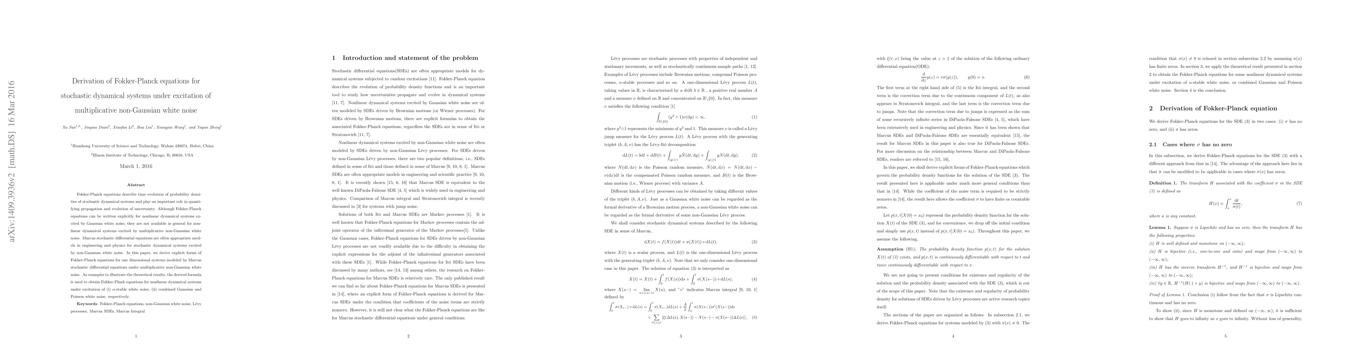 This paper derives explicit Fokker-Planck equations for one-dimensional stochastic dynamical systems modeled by Marcus equations under multiplicative non-Gaussian white noise, providing formulas for $\alpha$-stable and combined Gaussian-Poisson noise scenarios. These results extend the applicability of Fokker-Planck equations to non-Gaussian noise excitations.