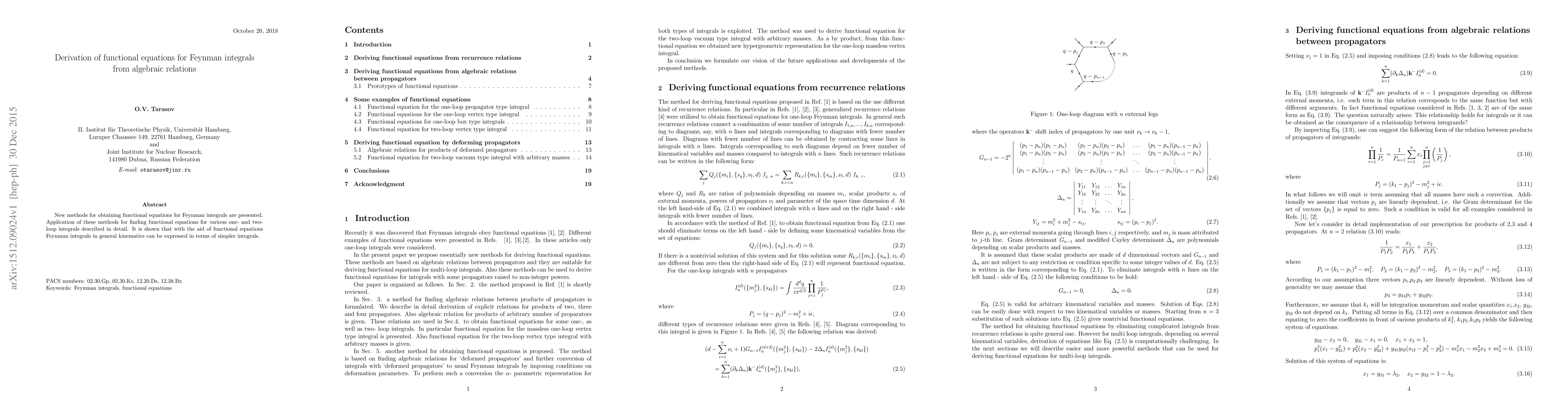 This paper introduces novel techniques for deriving functional equations for Feynman integrals, demonstrating their application to one- and two-loop integrals. The derived functional equations allow Feynman integrals to be expressed in terms of simpler integrals, simplifying their evaluation.