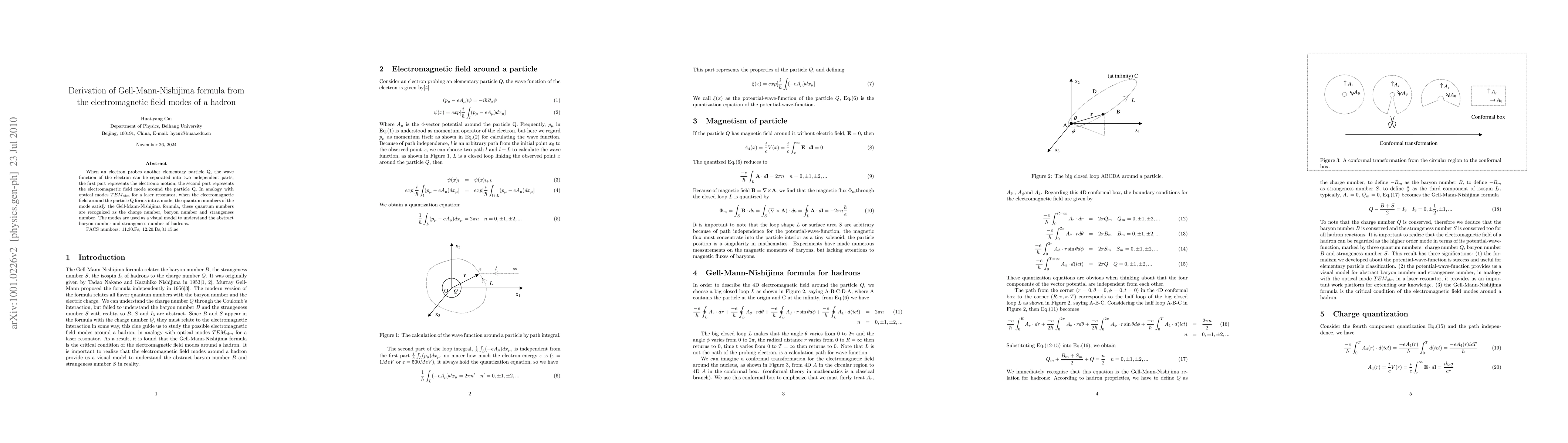 When an electron probes another elementary particle Q, the wave function of the electron can be separated into two independent parts, the first part represents the electronic motion, the second part represents the electromagnetic field mode around the particle Q. In analogy with optical modes $TEM_{nlm}$ for a laser resonator, when the electromagnetic field around the particle Q forms into a mode, the quantum numbers of the mode satisfy the Gell-Mann-Nishijima formula, these quantum numbers are recognized as the charge number, baryon number and strangeness number. The modes are used as a visual model to understand the abstract baryon number and strangeness number of hadrons.