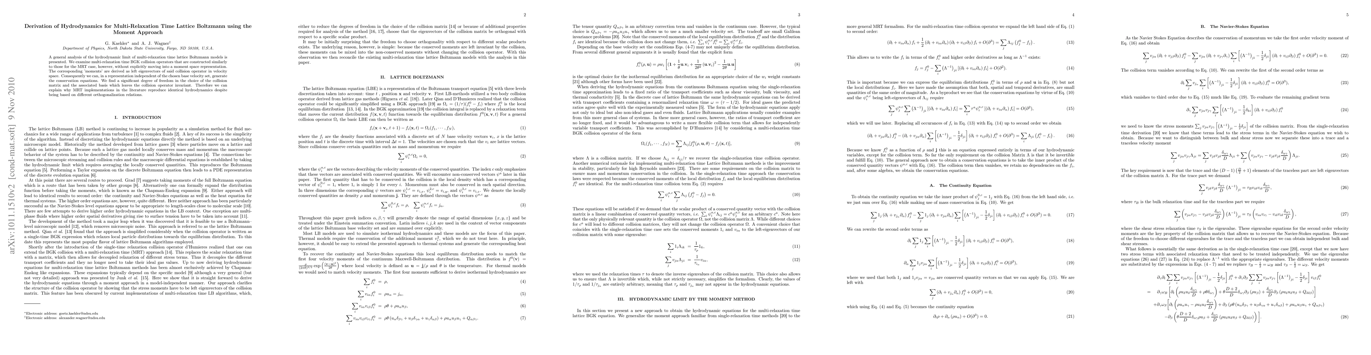This paper derives the hydrodynamic limit of multi-relaxation time lattice Boltzmann models using a moment-approach, showing that the conservation equations can be generated independently of the base velocity set. It highlights the flexibility in choosing the collision matrix, explaining why different MRT implementations yield the same hydrodynamics.