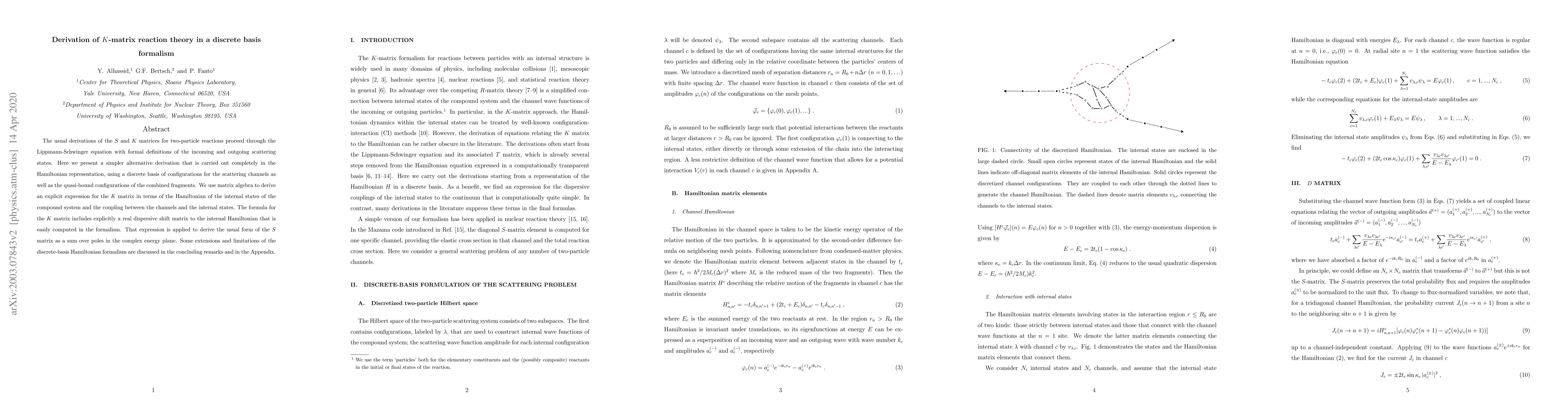 The usual derivations of the S and K matrices for two-particle reactions proceed through the Lippmann-Schwinger equation with formal definitions of the incoming and outgoing scattering states. Here we present an alternative derivation that is carried out completely in the Hamiltonian representation, using a discrete basis of configurations for the scattering channels as well as the quasi-bound configurations of the combined fragments. We use matrix algebra to derive an explicit expression for the K matrix in terms of the Hamiltonian of the internal states of the compound system and the coupling between the channels and the internal states. The formula for the K matrix includes explicitly a real dispersive shift matrix to the internal Hamiltonian that is easily computed in the formalism. That expression is applied to derive the usual form of the S matrix as a sum over poles in the complex energy plane. Some extensions and limitations of the discrete-basis Hamiltonian formalism are discussed in the concluding remarks and in the Appendix.