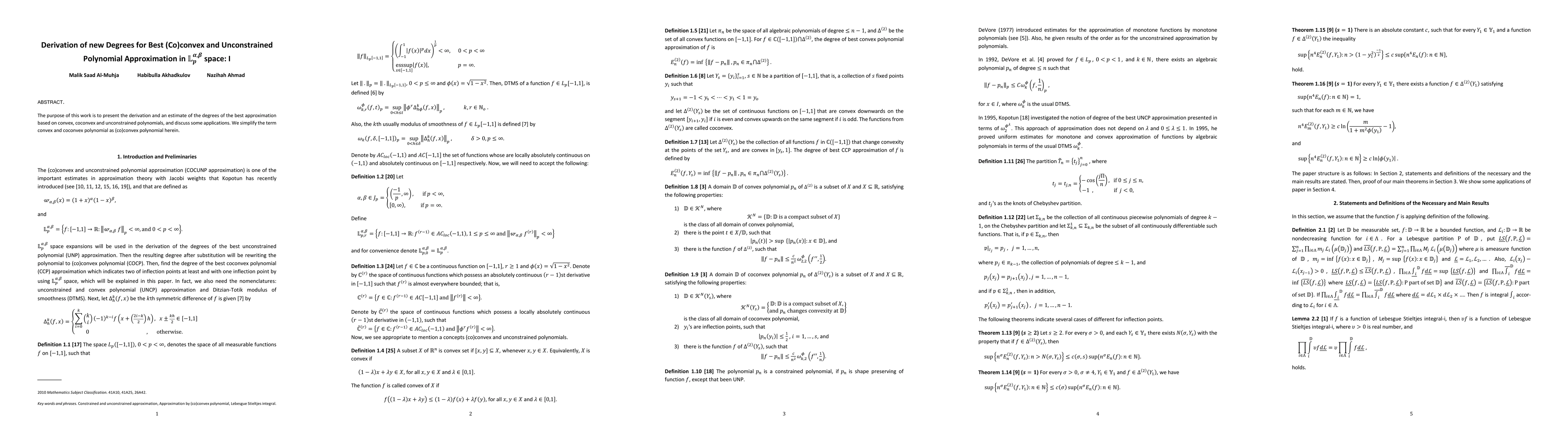 The purpose of this work is to present the derivation and an estimate of the degrees of the best approximation based on convex, coconvex and unconstrained polynomials, and discuss some applications. We simplify the term convex and coconvex polynomial as (co)convex polynomial herein.