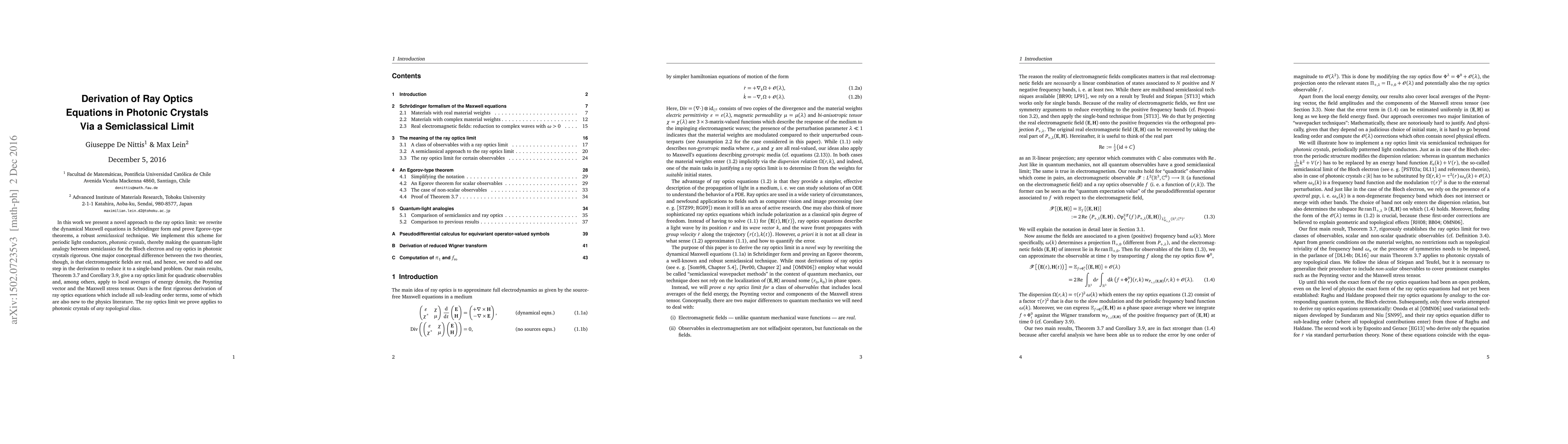 This paper introduces a new method to derive ray optics equations in photonic crystals by transforming Maxwell's equations into Schrödinger form and applying Egorov-type theorems. The results, including Theorems 3.3 and 4.1, provide a rigorous link between quantum-light semiclassics and ray optics, capturing sub-leading order terms previously unexplored. The approach extends to non-gyrotropic photonic crystals, addressing the complexity of multiband problems.