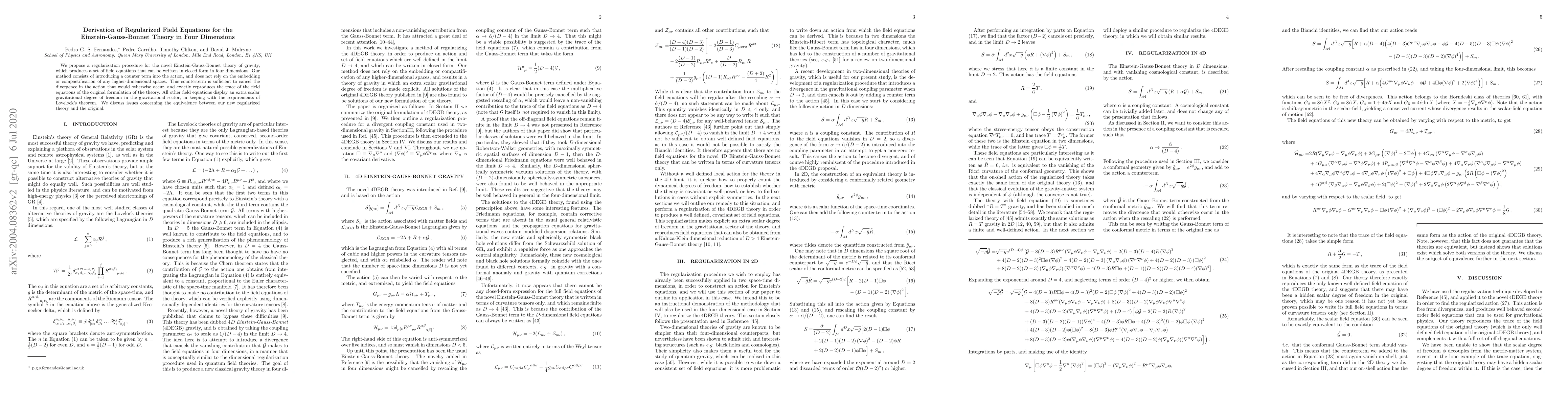 We propose a regularization procedure for the novel Einstein-Gauss-Bonnet theory of gravity, which produces a set of field equations that can be written in closed form in four dimensions. Our method consists of introducing a counter term into the action, and does not rely on the embedding or compactification of any higher-dimensional spaces. This counterterm is sufficient to cancel the divergence in the action that would otherwise occur, and exactly reproduces the trace of the field equations of the original formulation of the theory. All other field equations display an extra scalar gravitational degree of freedom in the gravitational sector, in keeping with the requirements of Lovelock's theorem. We discuss issues concerning the equivalence between our new regularized theory and the original.