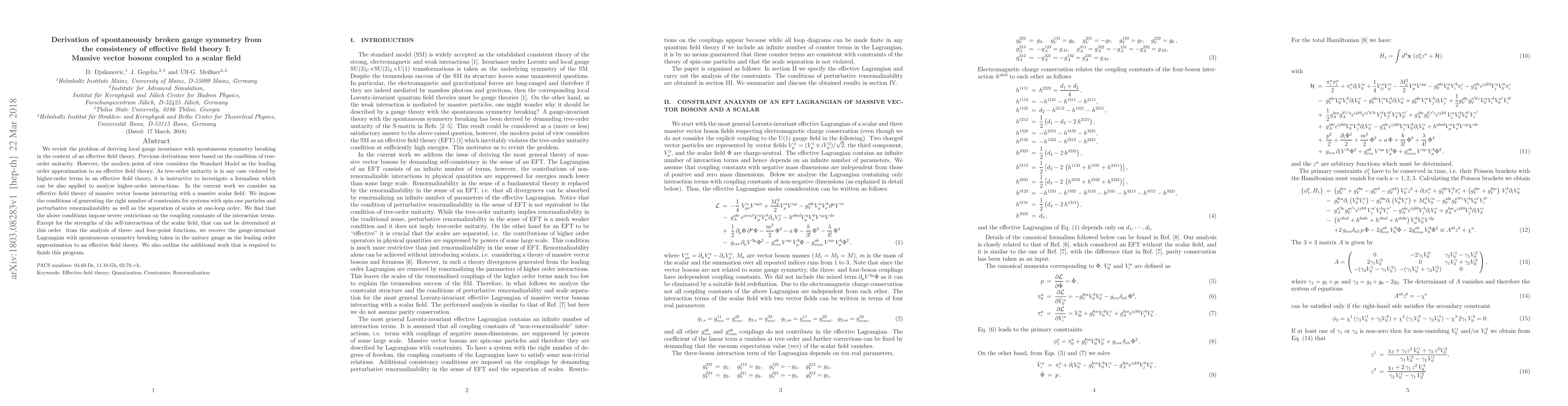 Researchers derived a gauge-invariant Lagrangian with spontaneous symmetry breaking using an effective field theory framework, imposing constraints on coupling constants to ensure perturbative renormalizability and separation of scales.