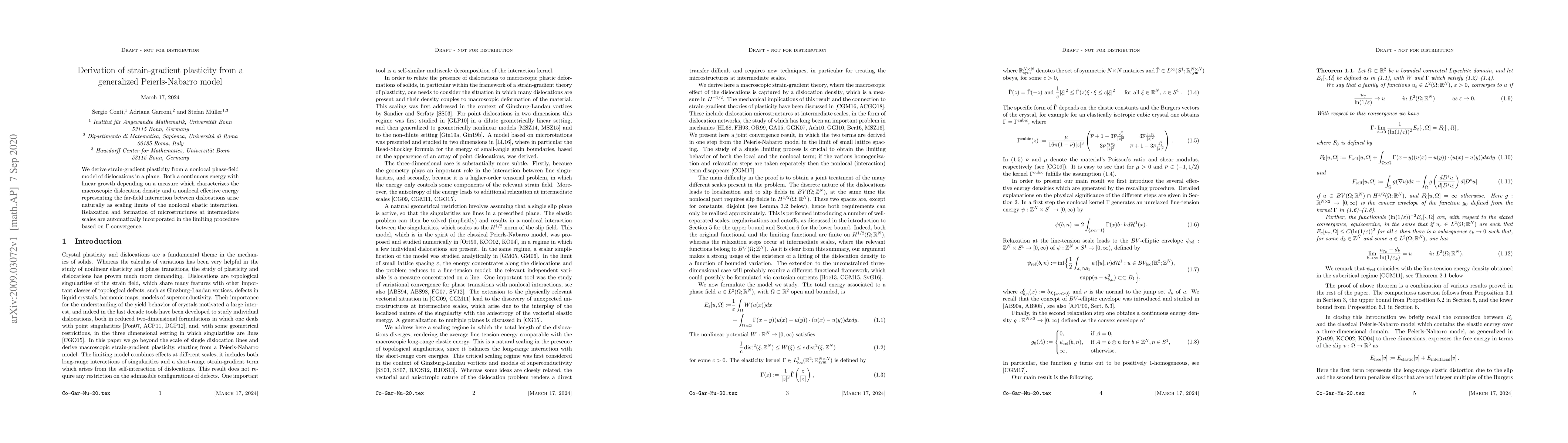 This paper derives strain-gradient plasticity from a generalized Peierls-Nabarro model using a nonlocal phase-field approach, incorporating continuous energy growth and nonlocal effective energy for dislocation interactions, with microstructure formation naturally emerging through $\Gamma$-convergence.