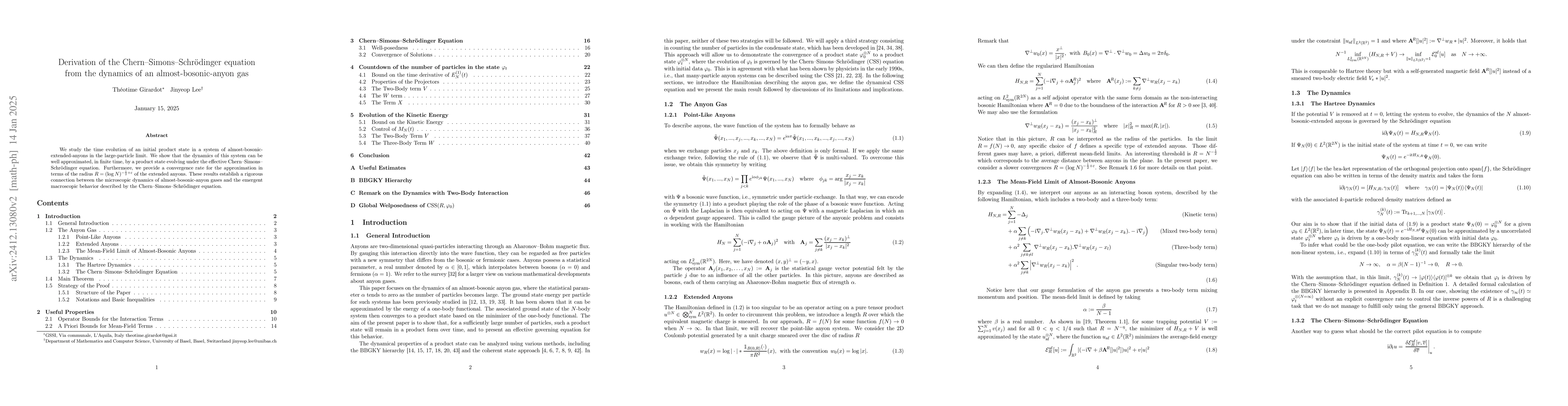 The paper derives the Chern-Simons-Schrödinger equation from the dynamics of an almost-bosonic-anyon gas in the large-particle limit, showing that the system's evolution approximates this equation effectively with a convergence rate dependent on the radius of the anyons. This establishes a link between microscopic anyon dynamics and macroscopic emergent behavior.