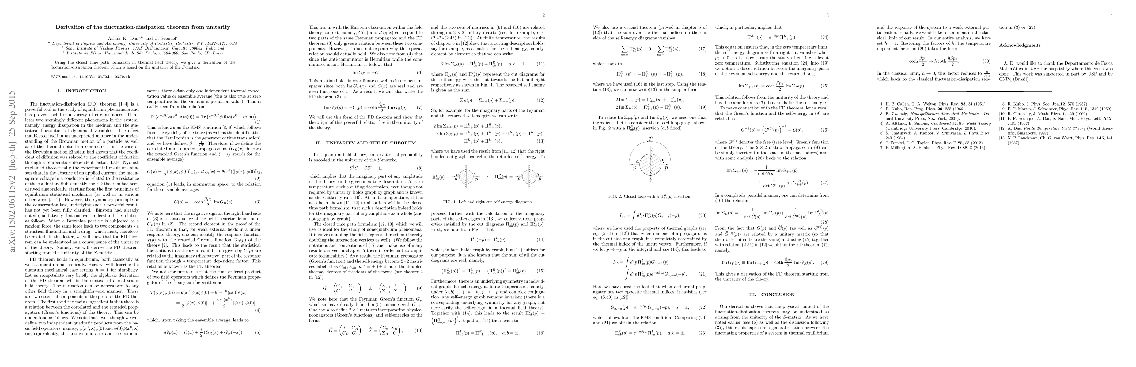 Researchers derived the fluctuation-dissipation theorem using unitarity in thermal field theory, a key finding that demonstrates the connection between theoretical physics and experimentally observable behavior.