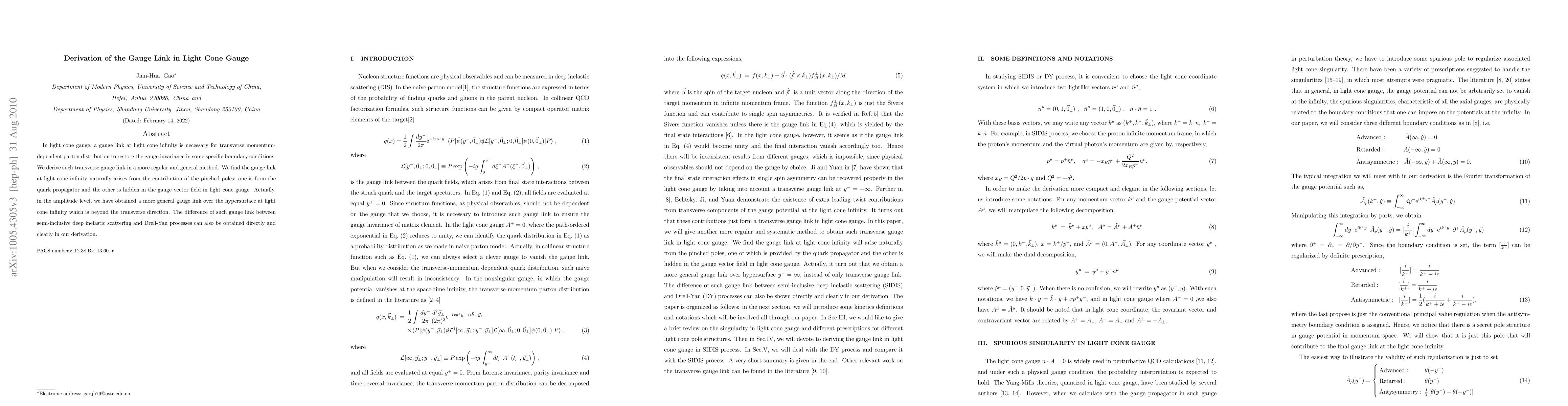In light cone gauge, a gauge link at light cone infinity is necessary for transverse momentum-dependent parton distribution to restore the gauge invariance in some specific boundary conditions. We derive such transverse gauge link in a more regular and general method. We find the gauge link at light cone infinity naturally arises from the contribution of the pinched poles: one is from the quark propagator and the other is hidden in the gauge vector field in light cone gauge. Actually, in the amplitude level, we have obtained a more general gauge link over the hypersurface at light cone infinity which is beyond the transverse direction. The difference of such gauge link between semi-inclusive deep inelastic scattering and Drell-Yan processes can also be obtained directly and clearly in our derivation.