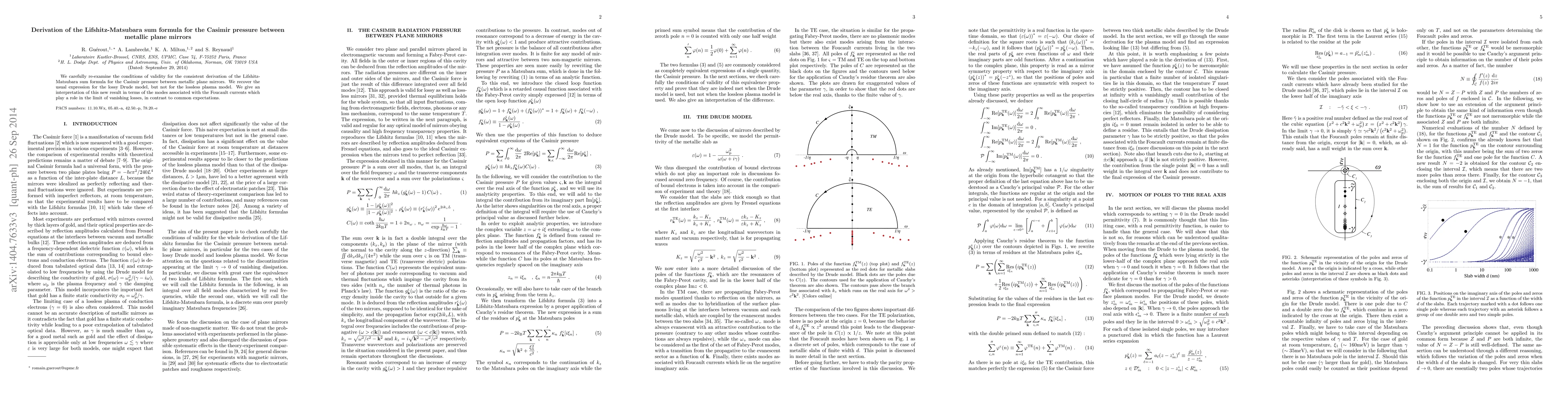Researchers re-examined the Lifshitz-Matsubara sum formula for Casimir pressure between metallic mirrors, recovering a well-known expression but not for a lossless plasma model, which they interpret in terms of Foucault currents.