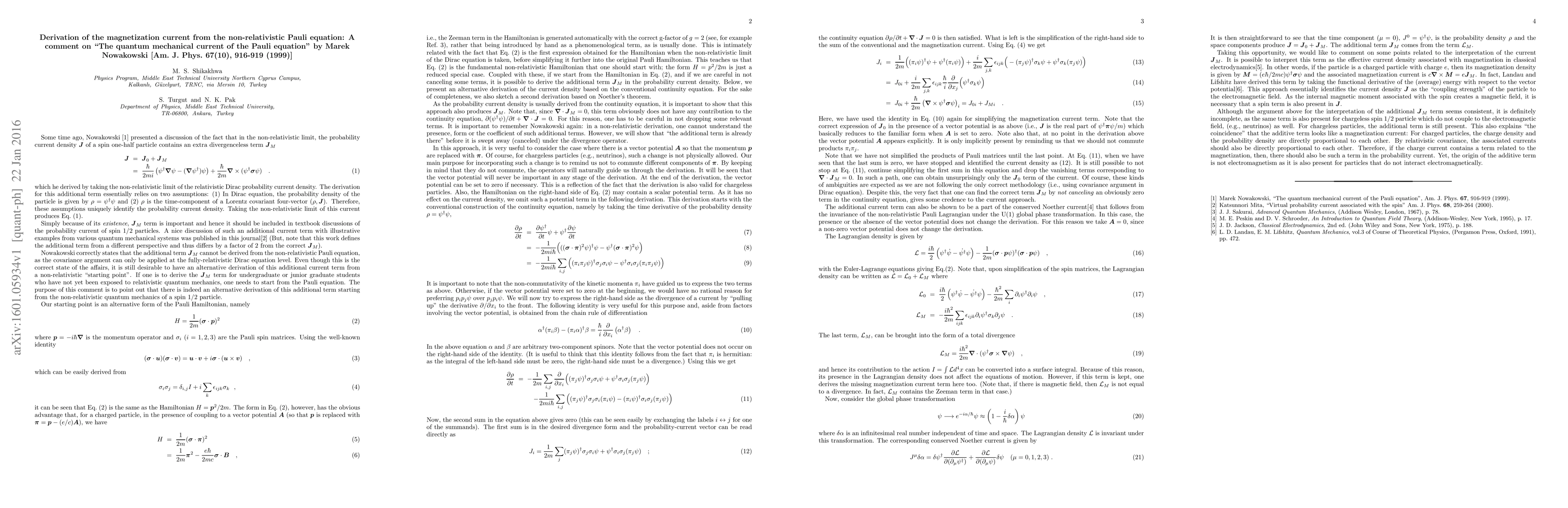 The magnetization current that appears in the non-relativistic limit of the Dirac equation is derived starting from the Pauli equation.