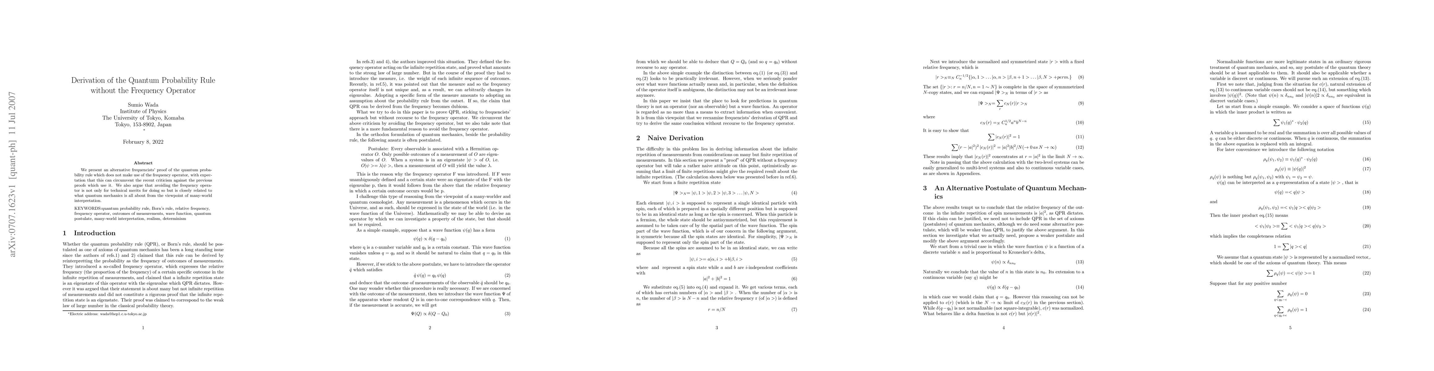 Researchers propose an alternative proof of the quantum probability rule without using the frequency operator, aiming to address criticisms of previous proofs and align with the fundamental principles of many-world interpretation in quantum mechanics.