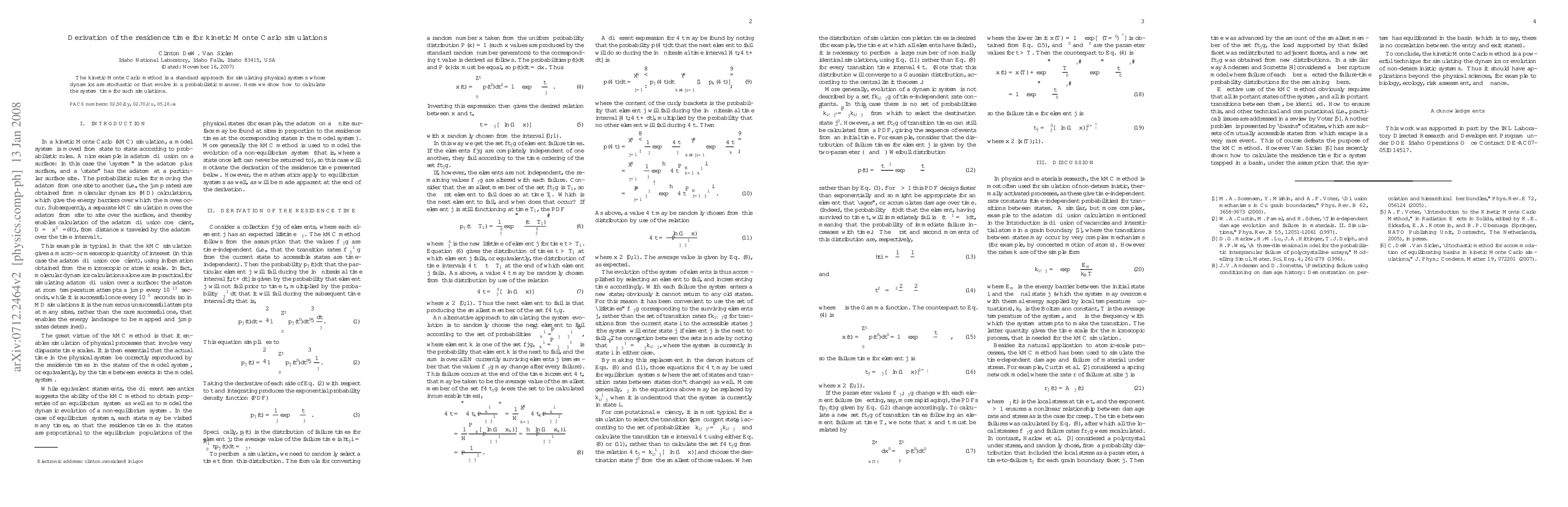This paper outlines a method for determining the residence time in kinetic Monte Carlo simulations, essential for accurately modeling stochastic or probabilistic system dynamics. The derivation provides a robust framework for enhancing the precision of these simulations.