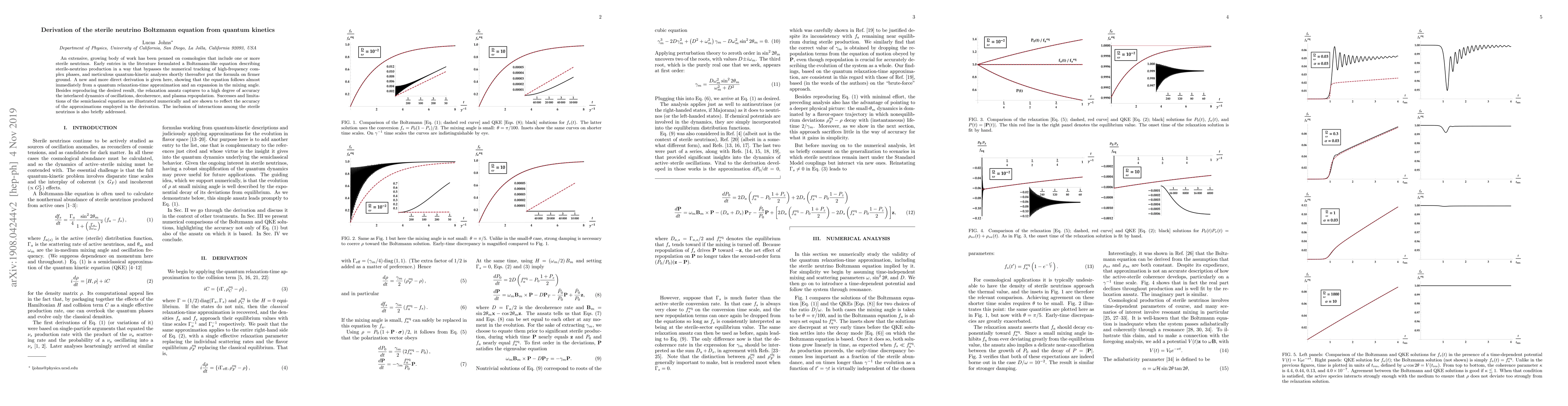 This paper presents a new derivation of the sterile neutrino Boltzmann equation from quantum kinetics, showing it follows directly from a quantum relaxation-time approximation and an expansion in the mixing angle. The derived equation accurately captures the dynamics of oscillations, decoherence, and plasma repopulation, and its successes and limitations are numerically illustrated.