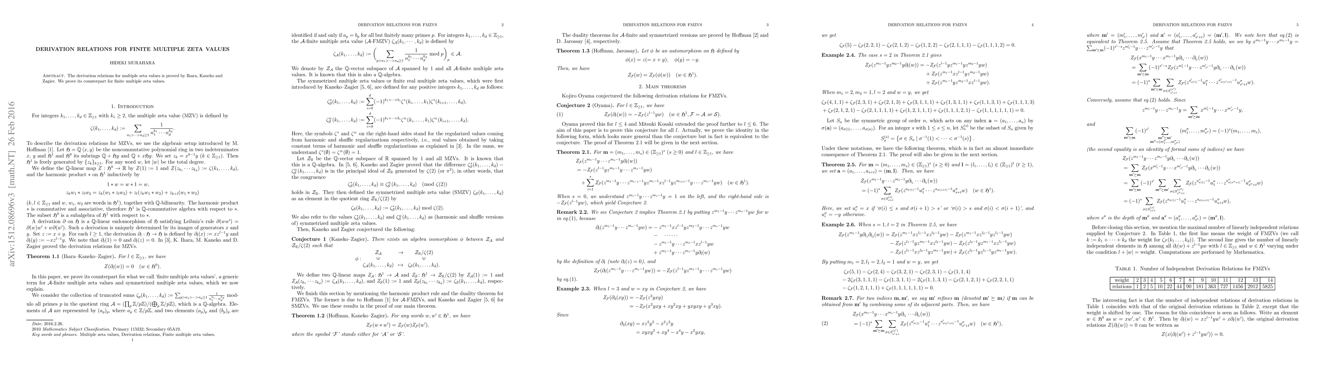 Summary: This paper proves derivation relations for finite multiple zeta values, extending the foundational work of Ihara, Kaneko, and Zagier on general multiple zeta values. It provides new insights into the structure of finite multiple zeta values.