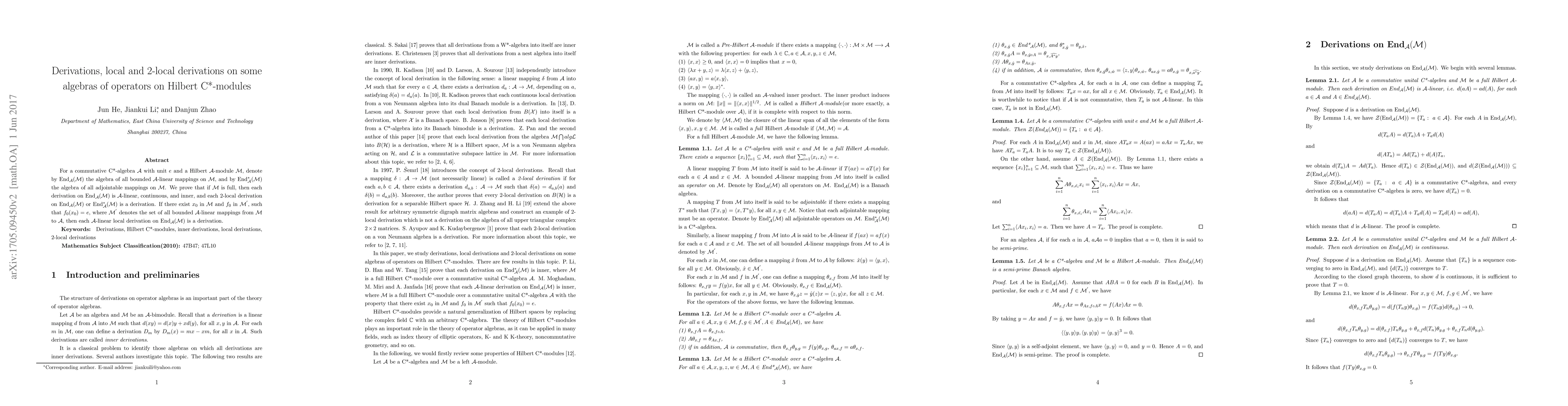 This paper investigates derivations on algebras of operators on Hilbert C*-modules, showing that certain derivations are linear, continuous, and inner, while others can be shown to be derivations under specific conditions.
