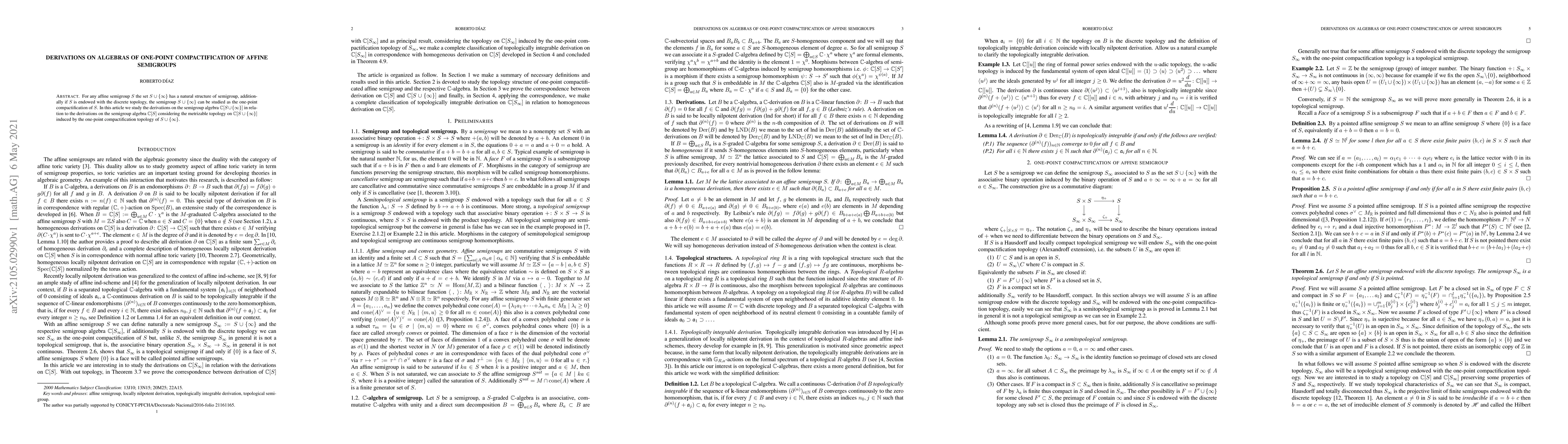 This paper investigates the derivations on the semigroup algebra $\mathbb{C}[S\cup\{\infty\}]$ of the one-point compactification of an affine semigroup $S$, comparing them to the derivations on $\mathbb{C}[S]$ under the metrizable topology induced by the compactification.