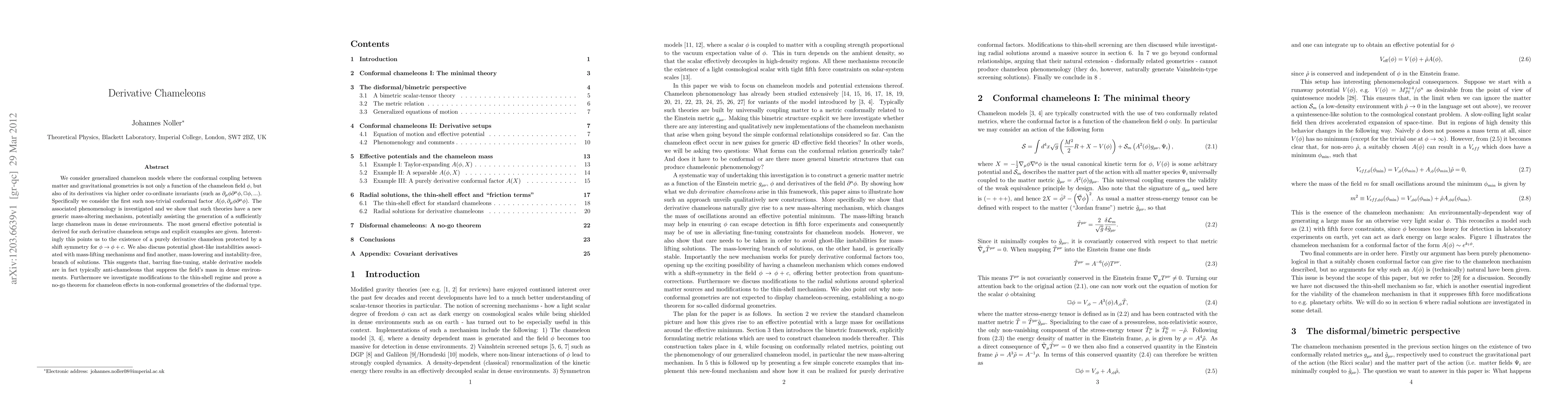 We consider generalized chameleon models where the conformal coupling between matter and gravitational geometries is not only a function of the chameleon field \phi, but also of its derivatives via higher order co-ordinate invariants. Specifically we consider the first such non-trivial conformal factor A(\phi,X), where X is the canonical kinetic term for \phi. The associated phenomenology is investigated and we show that such theories have a new generic mass-altering mechanism, potentially assisting the generation of a sufficiently large chameleon mass in dense environments. The most general effective potential is derived for such derivative chameleon setups and explicit examples are given. Interestingly this points us to the existence of a purely derivative chameleon protected by a shift symmetry for \phi. We also discuss potential ghost-like instabilities associated with mass-lifting mechanisms and find another, mass-lowering and instability-free, branch of solutions. This suggests that, barring fine-tuning, stable derivative models are in fact typically anti-chameleons that suppress the field's mass in dense environments. Furthermore we investigate modifications to the thin-shell regime and prove a no-go theorem for chameleon effects in non-conformal geometries of the disformal type.