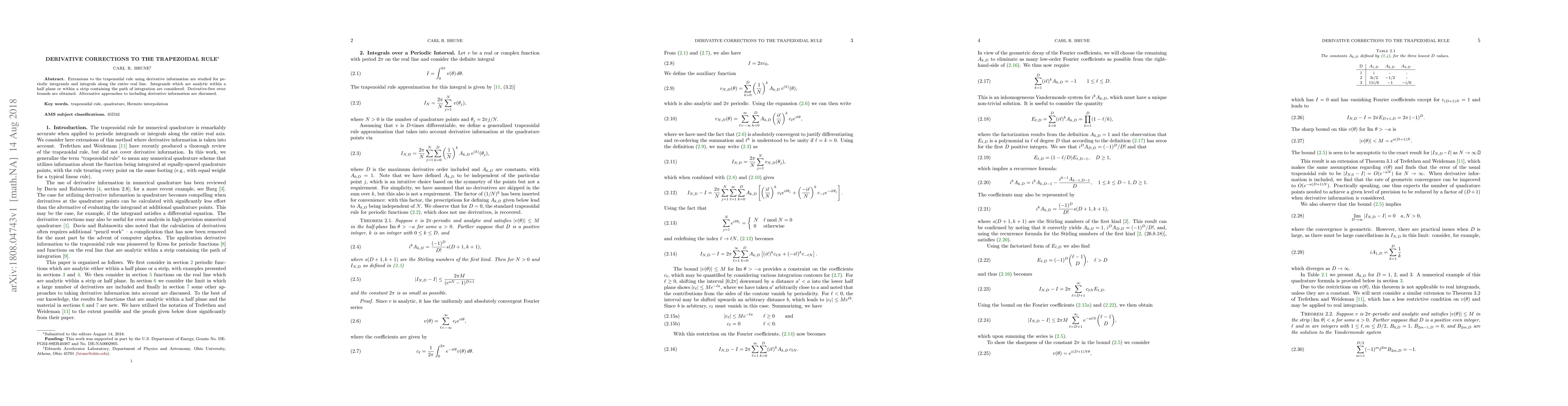 Extensions to the trapezoidal rule using derivative information are studied for periodic integrands and integrals along the entire real line. Integrands which are analytic within a half plane or within a strip containing the path of integration are considered. Derivative-free error bounds are obtained. Alternative approaches to including derivative information are discussed.