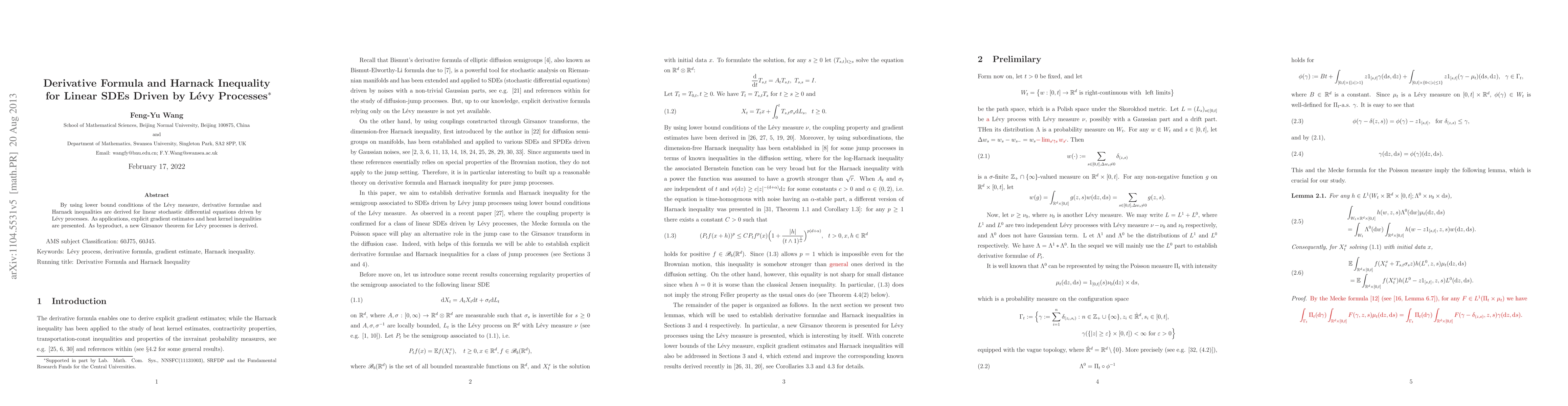 This paper develops derivative formulae and Harnack inequalities for linear SDEs driven by Lévy processes, utilizing lower bound conditions of the Lévy measure. It also presents explicit gradient estimates and heat kernel inequalities, and derives a new Girsanov theorem for Lévy processes.