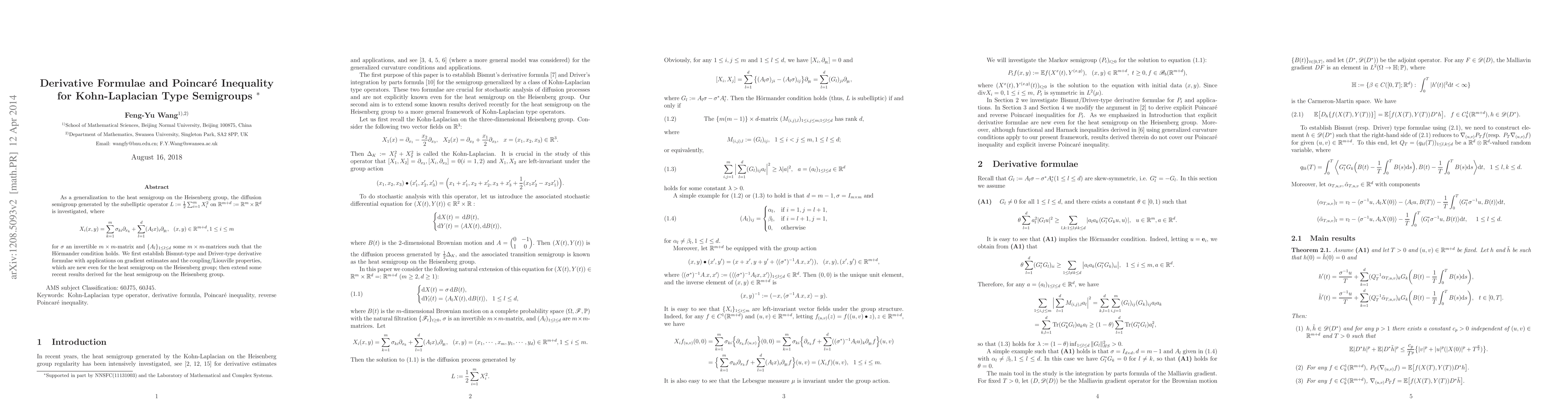 This paper explores a generalized diffusion semigroup on R^{m+d}, extending the heat semigroup on the Heisenberg group. It establishes new Bismut-type and Driver-type derivative formulae, leading to gradient estimates and properties like coupling/Liouville. These findings also extend recent results for the heat semigroup on the Heisenberg group.